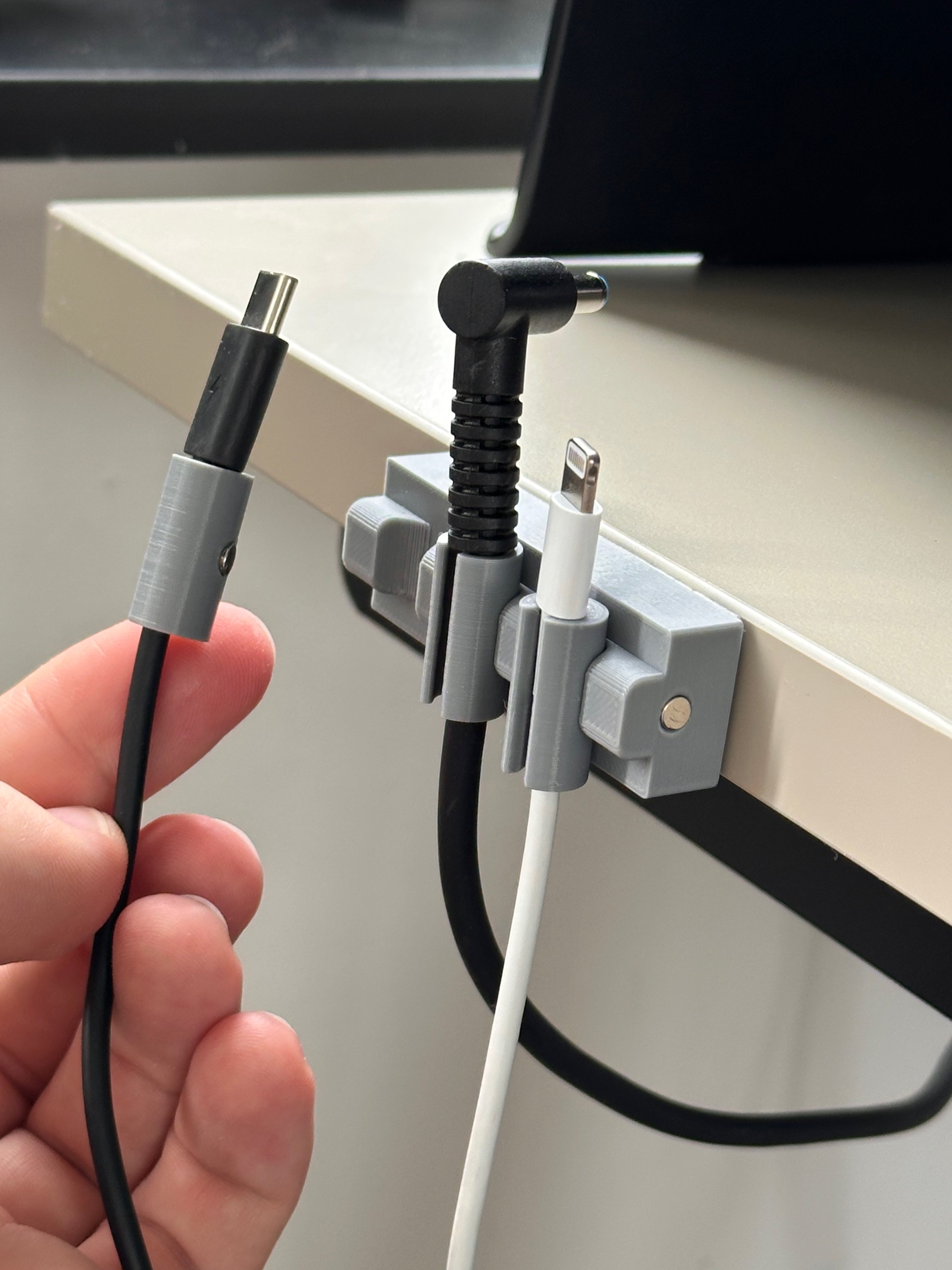 Mit diesem magnetischen Kabelhalter schaffen Sie ganz einfach einen übersichtlicheren und aufgeräumteren Arbeitsplatz. Er wurde für die effektive Verwaltung Ihrer Kabel und Leitungen entwickelt und hilft, Kabelsalat und Unordnung auf Ihrem Schreibtisch oder in anderen Bereichen zu vermeiden. Dank der starken Magnete (4 x 2 mm) lässt sich dieser praktische Kabelhalter mit doppelseitigem Klebeband einfach an verschiedenen Oberflächen wie Schreibtischen, Regalen oder Wänden befestigen. So wird sichergestellt, dass Ihre Kabel sicher an ihrem Platz bleiben und nicht herunterfallen. Für noch mehr Flexibilität und eine umfassende Kabelmanagementlösung ist der Halter stapelbar. So können Sie mehrere Geräte anschließen und eine individuelle Organisation ganz nach Ihren Bedürfnissen schaffen.