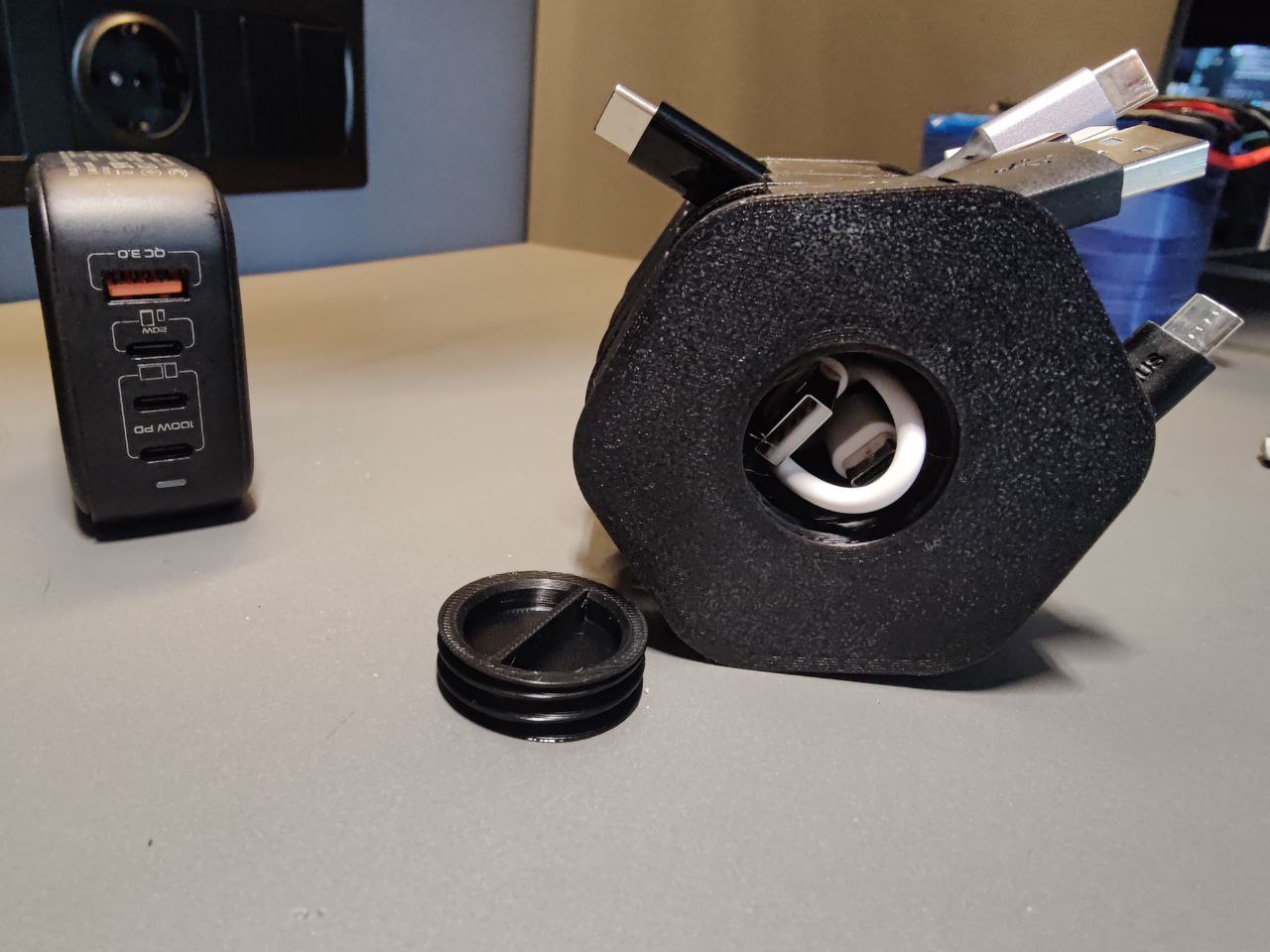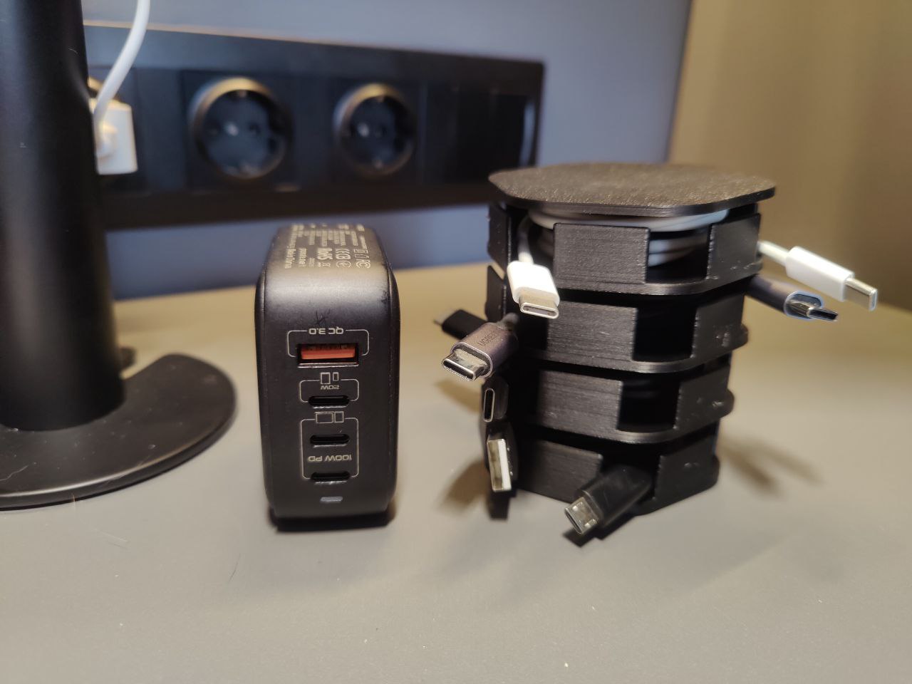 Der Halter ist robust und sorgt dafür, dass Ihre Kabel ordentlich aufgewickelt und an ihrem Platz bleiben. Dank des modularen Designs können Sie den Halter individuell an Ihre Bedürfnisse anpassen und ihn so ideal für verschiedene Einrichtungsstile machen. Ob im Homeoffice, am Bett oder im Hobbyraum – mit diesem Ladekabelhalter bleiben Ihre Kabel übersichtlich und leicht zugänglich. Verabschieden Sie sich vom Kabelsalat und freuen Sie sich über einen funktionaleren und aufgeräumteren Bereich mit diesem praktischen Kabelhalter.