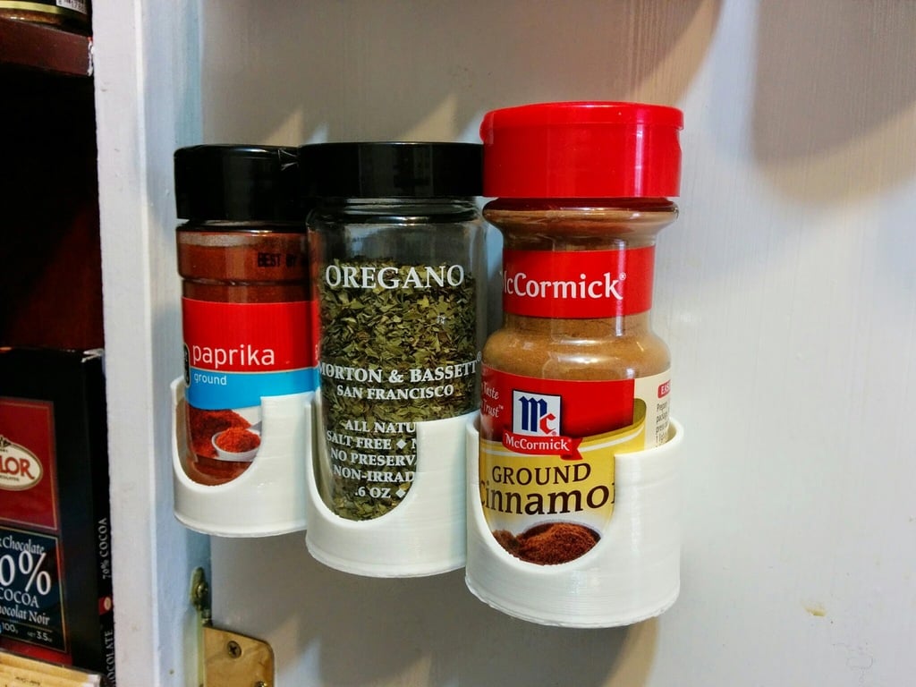 Dieses parametrische Gewürzregal optimiert den Platz in Ihrer Küche und sorgt dafür, dass Ihre Gewürze stets geordnet und leicht zugänglich sind. Es kann sowohl an der Wand als auch an der Innenseite einer Schranktür montiert werden und ist somit eine flexible Lösung für unterschiedliche Küchenlayouts. Das Regaldesign ist anpassungsfähig und bietet Platz für die meisten nordamerikanischen Standard-Gewürzbehälter, kann aber auch an ungewöhnlich geformte Gewürzgläser angepasst werden.