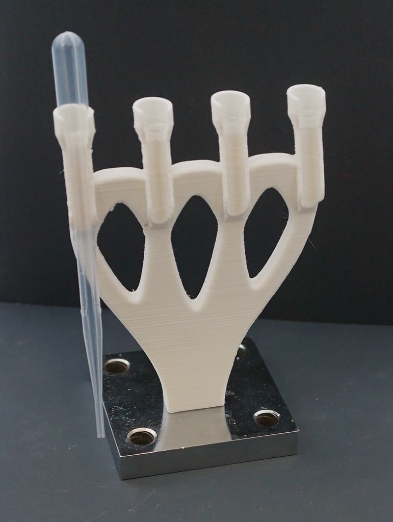 Der Halter lässt sich einfach mit einer M3-Schraube an einer Metallplatte befestigen, wodurch Sie Ihr Setup je nach Bedarf anpassen können. Der integrierte Sockel kann in zwei Teilen gedruckt werden, sodass Sie ihn zur Erhöhung der Stabilität mit Sand oder anderem Material füllen können, was ihn zu einer flexiblen und nützlichen Lösung für den Laborgebrauch macht.