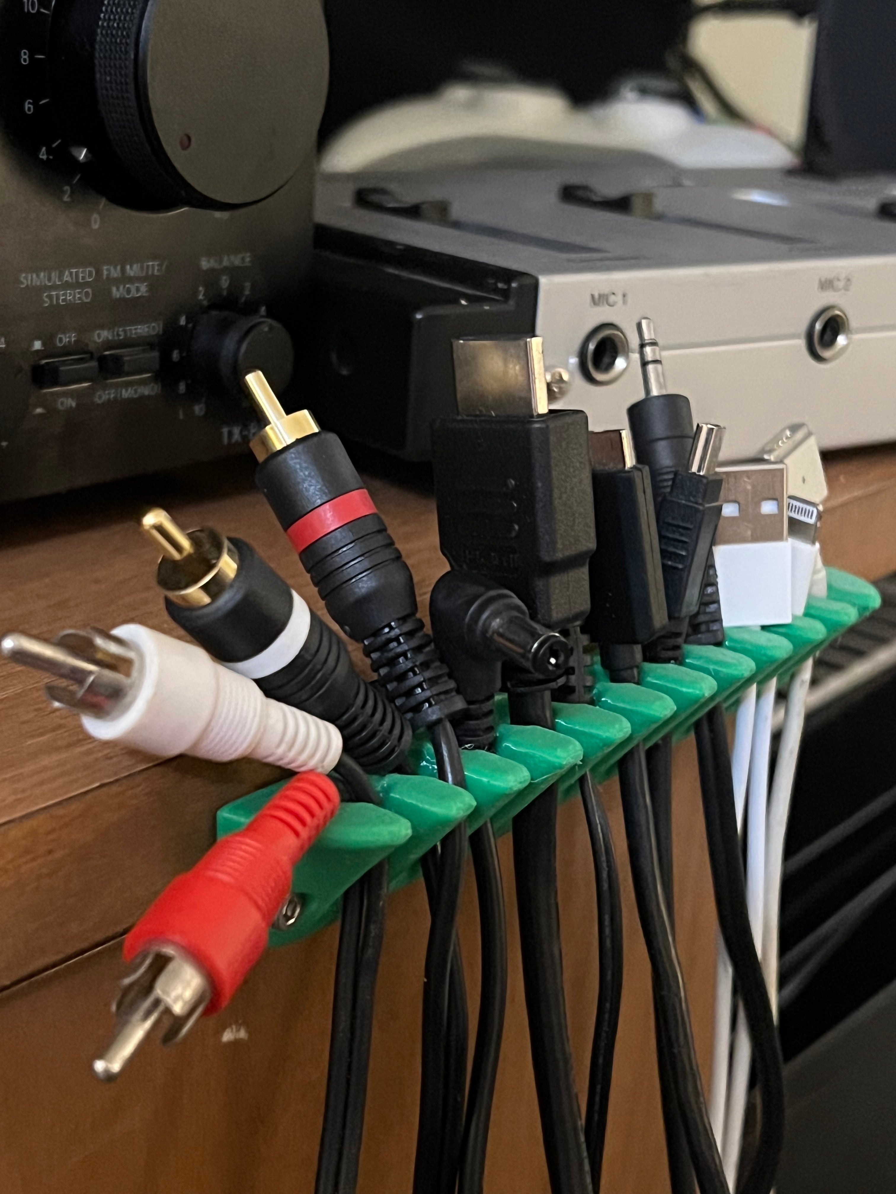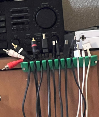 Mit dem Rake Rack Kabelhalter können Sie bis zu 11 Kabel effizient organisieren und verhindern, dass sie sich verheddern. Diese praktische Lösung sorgt dafür, dass Ihre Kabel immer leicht zu finden und einsatzbereit sind, wenn Sie sie brauchen. Der Halter ist für die Montage an Wänden oder in Schränken konzipiert. Sie können ihn mit Schrauben für eine dauerhafte Installation befestigen oder doppelseitiges Klebeband für eine einfachere und flexiblere Platzierung verwenden. Dies macht ihn zu einer vielseitigen Kabelklemme, die zu Hause und im Büro für mehr Ordnung und Übersicht sorgt und hilft, Kabelsalat zu vermeiden.