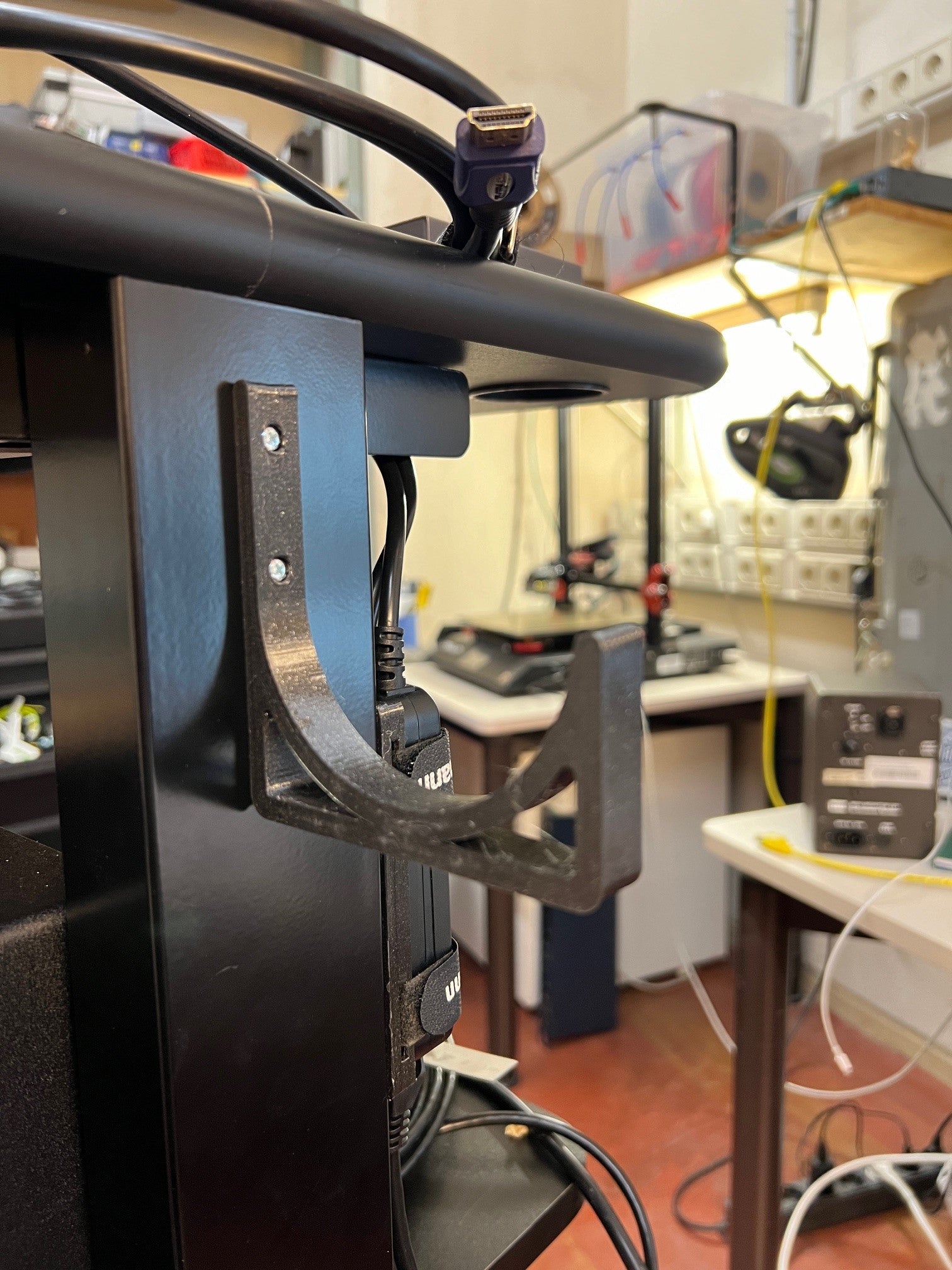 Er ist so konzipiert, dass er auch bei Bewegung stabil bleibt und die Kabel an Ort und Stelle bleiben. Die Befestigung erfolgt einfach und sicher mit zwei M3-Flachkopfschrauben, die eine zuverlässige Befestigung gewährleisten. Dieser Kabelhaken ist ein funktionales Element, das zu einem übersichtlicheren und effizienteren Arbeitsplatz beiträgt und Kabel übersichtlich und griffbereit hält.