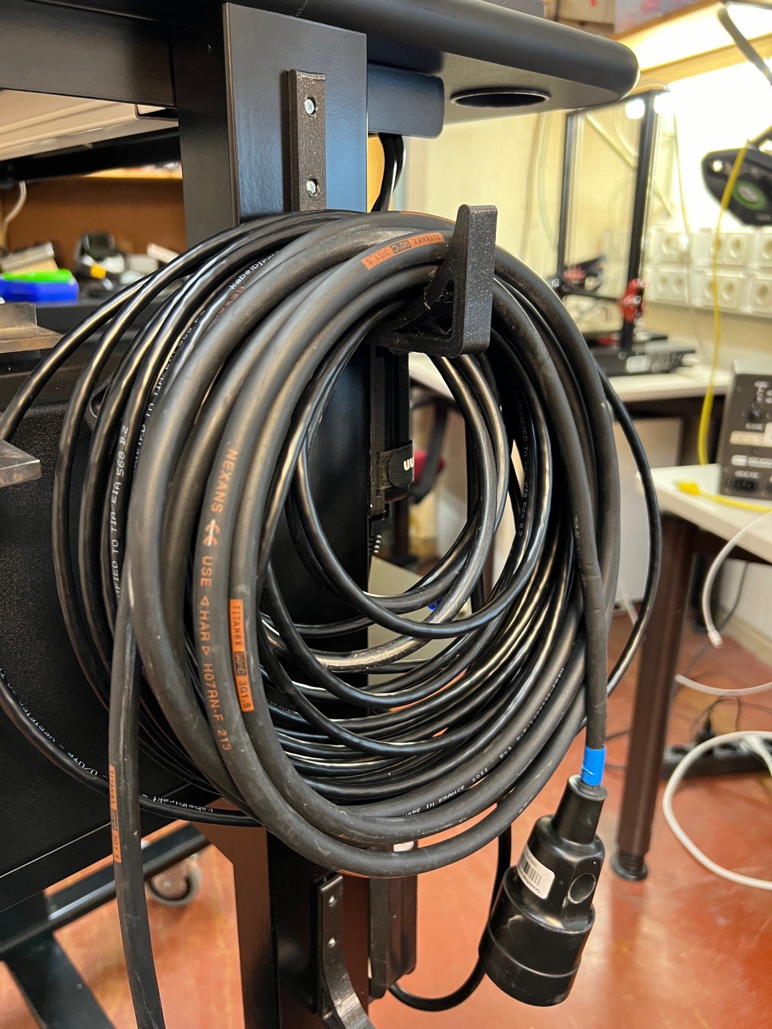 Dieser robuste Kabelhalter bietet eine praktische und sichere Lösung zur Kabelorganisation, insbesondere auf Rollwagen. Mit einer Größe von ca. 90 x 90 mm bietet er ausreichend Platz für die übersichtliche Aufbewahrung verschiedener Kabeltypen wie XLR- und Stromkabel und ist somit ideal für den Einsatz in Studios, Werkstätten oder bei Veranstaltungen.
