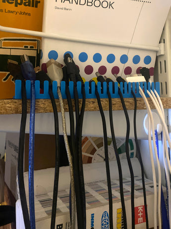Sorgen Sie mit diesem einfachen Kabelhalter für einen aufgeräumten und organisierten Arbeitsplatz. Diese praktische Lösung unterstützt Sie bei der effizienten Kabelführung und verhindert Kabelsalat. Der Kabelhalter ist mit drei unterschiedlich großen Schlitzen ausgestattet. – 5 mm, 4 mm und 3 mm – und eignet sich somit für eine Vielzahl von Kabeln und Kabelenden. Er lässt sich einfach und sicher mit drei Schrauben montieren und eignet sich ideal für die Platzierung an der Kante eines Regals oder Tisches. Indem er Ihre Kabel an Ort und Stelle hält, sorgt dieser Kabelhalter dafür, dass sie immer zugänglich und leicht zu erkennen sind, und sorgt gleichzeitig für eine ordentliche und funktionale Umgebung, sowohl zu Hause als auch im Büro.