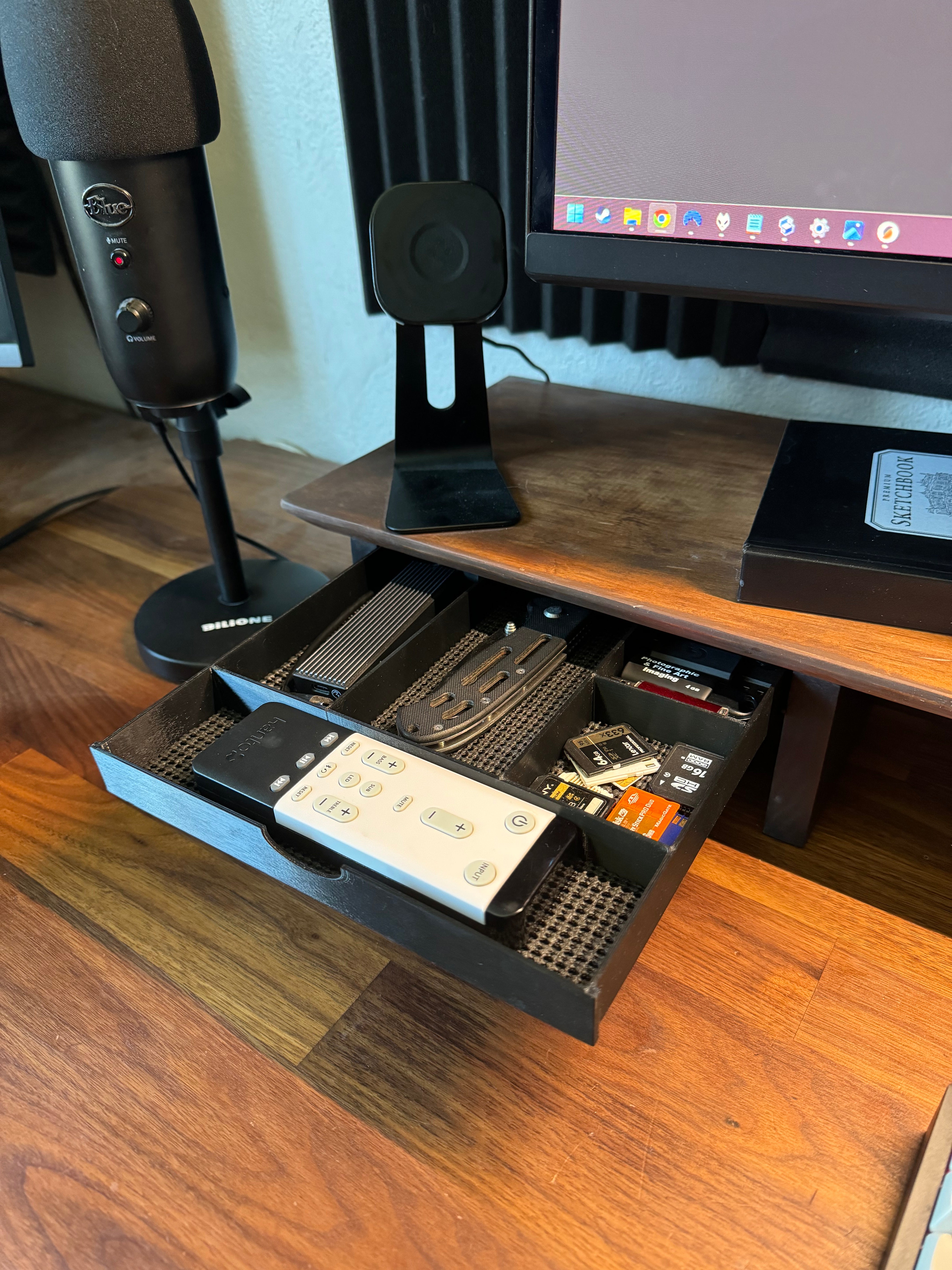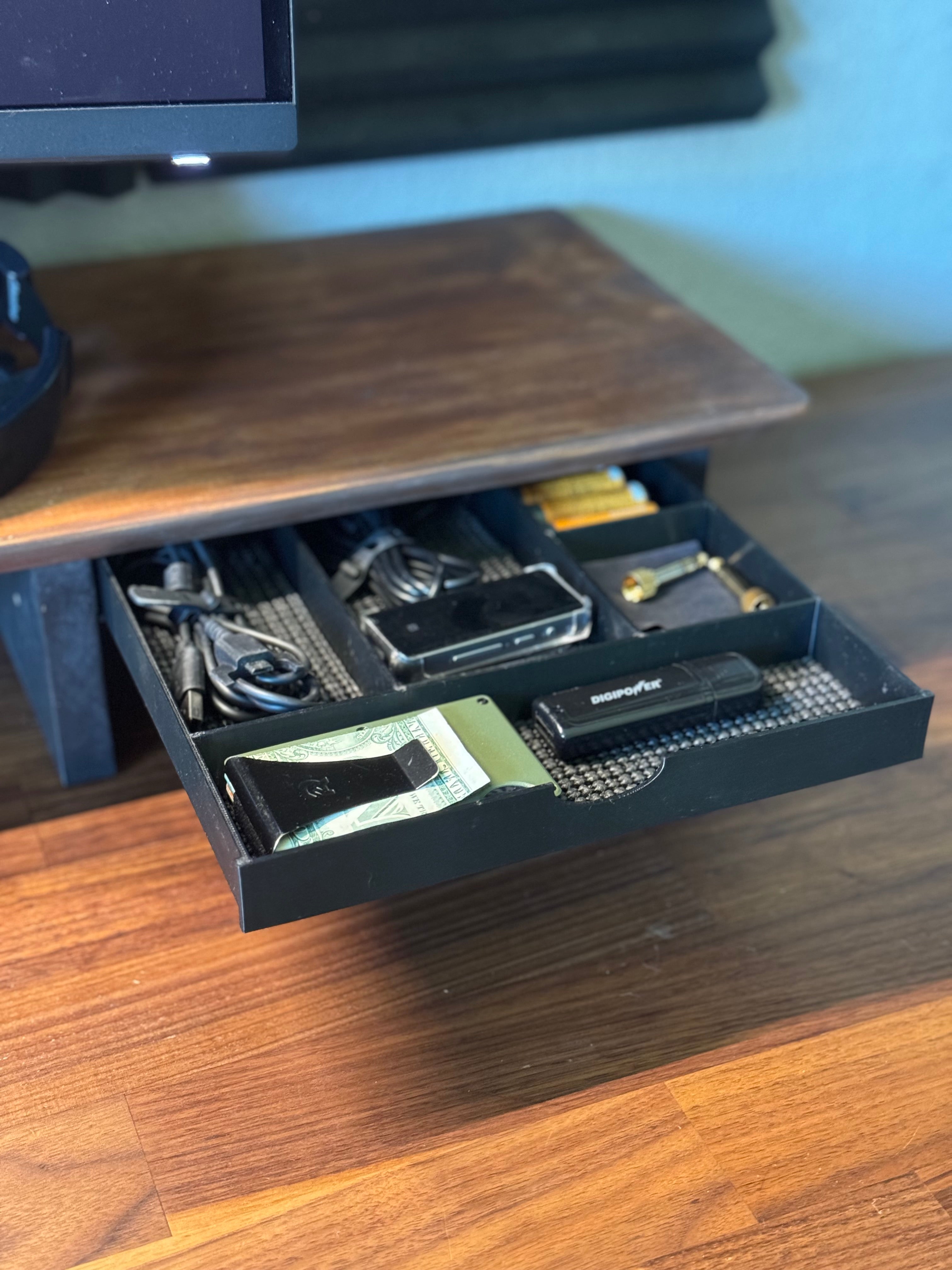 Werten Sie Ihren Arbeitsplatz mit diesem praktischen Schreibtischregal auf, das mit intelligenten Schubladen unter dem Schreibtisch ausgestattet ist und sich perfekt für die Aufbewahrung kleiner Gegenstände eignet. Diese Schubladenablagelösungen sind so konzipiert, dass sie nahtlos zwischen die Beine Ihres Schreibtisches passen. Sie ermöglichen Ihnen die einfache Aufbewahrung und Organisation Ihrer Büroutensilien und können gleichzeitig vollständig herausgezogen werden, um sie als Ablage zu verwenden.
