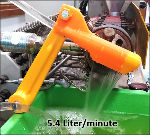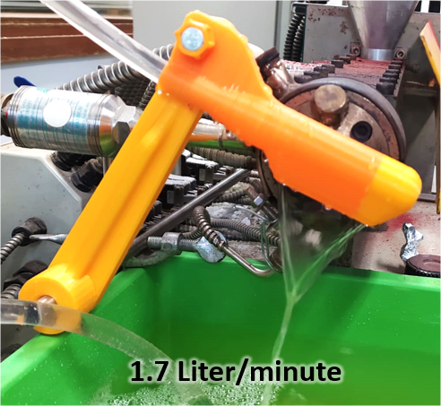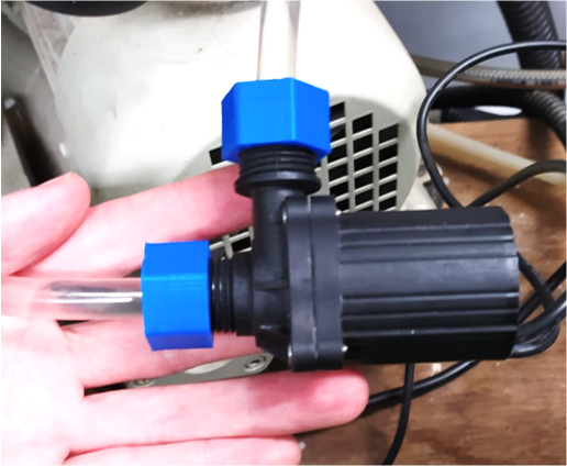 Das Design des Hauptgeräts ermöglicht den Anschluss an ein flexibles Rohr mit einem Durchmesser von 10 mm, was eine schnelle und problemlose Installation ermöglicht. Für eine optimale Kühlung empfiehlt sich der Einsatz einer regelbaren 24V-Pumpe, die zwischen 1,5 und 5 Liter Wasser pro Stück fördern kann Minute. Die Einstellung des Durchflusses auf ca. 2 l/min sorgt für ein ideales Gleichgewicht zwischen effizienter Kühlung und minimalem Druck auf das Filament.