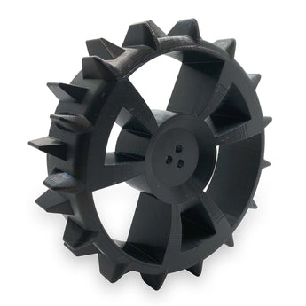 - Jedes Rad hat einen Durchmesser von 17,3 cm (inkl. Geländespikes), was für einen guten Vortrieb sorgt.
