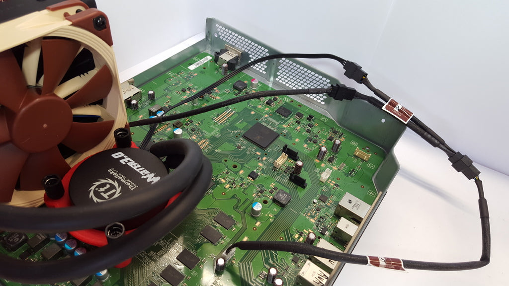 Diese Lösung ermöglicht eine effiziente Wärmeableitung für Ihre Xbox One, was zu einer stabileren und potenziell besseren Leistung beitragen kann. Für eine optimale Kühlwirkung des Radiators wird die Verwendung eines Noctua NF-F12 PWM-Lüfters empfohlen. Bitte beachten Sie, dass eine Anpassung des PWM-Anschlusses an den J7C1-Anschluss des Xbox One-Motherboards und dessen spezifische Pinbelegung erforderlich sein kann.