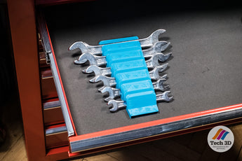 Dieser Organizer ist so konzipiert, dass Ihr Satz kleiner Maulschlüssel übersichtlich und leicht zugänglich aufbewahrt wird. Er eignet sich ideal für die Aufbewahrung von bis zu sechs Maulschlüsseln in den Größen 6 mm bis 17 mm. Egal, ob Sie Ihre Werkzeuge lieber in einer Werkzeugschublade aufbewahren oder griffbereit auf dem Schreibtisch haben möchten, dieser Organizer passt perfekt. Für zusätzliche Stabilität und gegen Verrutschen ist an der Unterseite Platz für zwei Magnete (20 x 10 x 2,5 mm). Diese Lösung trägt zu einem aufgeräumteren und effizienteren Arbeitsplatz bei, an dem Sie das richtige Werkzeug bei Bedarf leicht finden.