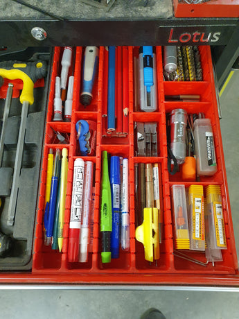 Dieser praktische Werkzeug-Organizer sorgt für Ordnung in Ihrem Werkzeugkasten. Dank des modularen Designs lassen sich die Trennwände an unterschiedliche Werkzeuglängen anpassen und sorgen so für optimale Raumausnutzung. Mit dieser Werkzeugaufbewahrungslösung können Sie Ihre Werkzeuge leicht sehen und finden, sodass Sie nicht lange suchen müssen. Der Organizer trägt zu einem aufgeräumteren und effizienteren Arbeitsplatz bei und eignet sich sowohl für professionelle Handwerker als auch für Hobbybastler, die sich System in ihrem Werkzeugkasten wünschen.
