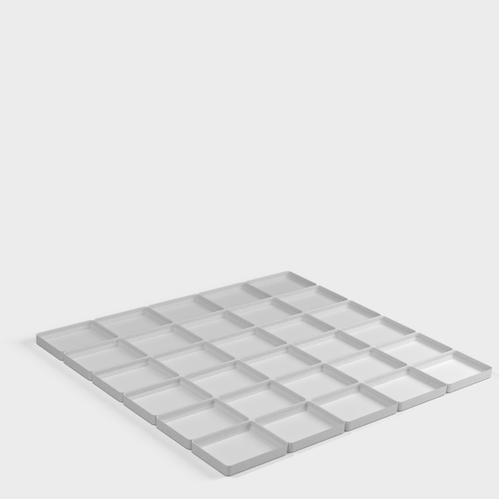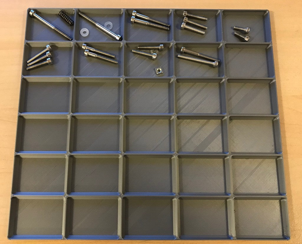 Der Zweck des Trays besteht darin, den Arbeitsablauf zu optimieren, indem alle Teile sortiert und für den nächsten Montageschritt sofort verfügbar sind. Dies reduziert die Suchzeit und minimiert das Risiko fehlender Komponenten. Das Tray eignet sich für eine Vielzahl von Projekten, bei denen die präzise Anordnung kleiner Elemente unerlässlich ist.