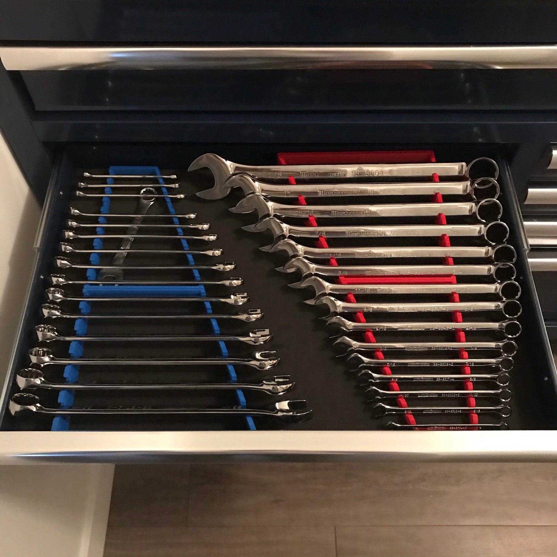 Mit Platz für 16 metrische Schraubenschlüssel (von M7 bis M22) und 15 Zollschlüssel (von 1/4 Zoll bis 1-1/8 Zoll) deckt dieses Organizer-Set die gängigsten Größen ab, die Sie benötigen. Es ist die ideale Lösung für einen effizienteren und aufgeräumteren Arbeitsplatz, egal ob Sie professioneller Handwerker oder begeisterter Heimwerker sind.