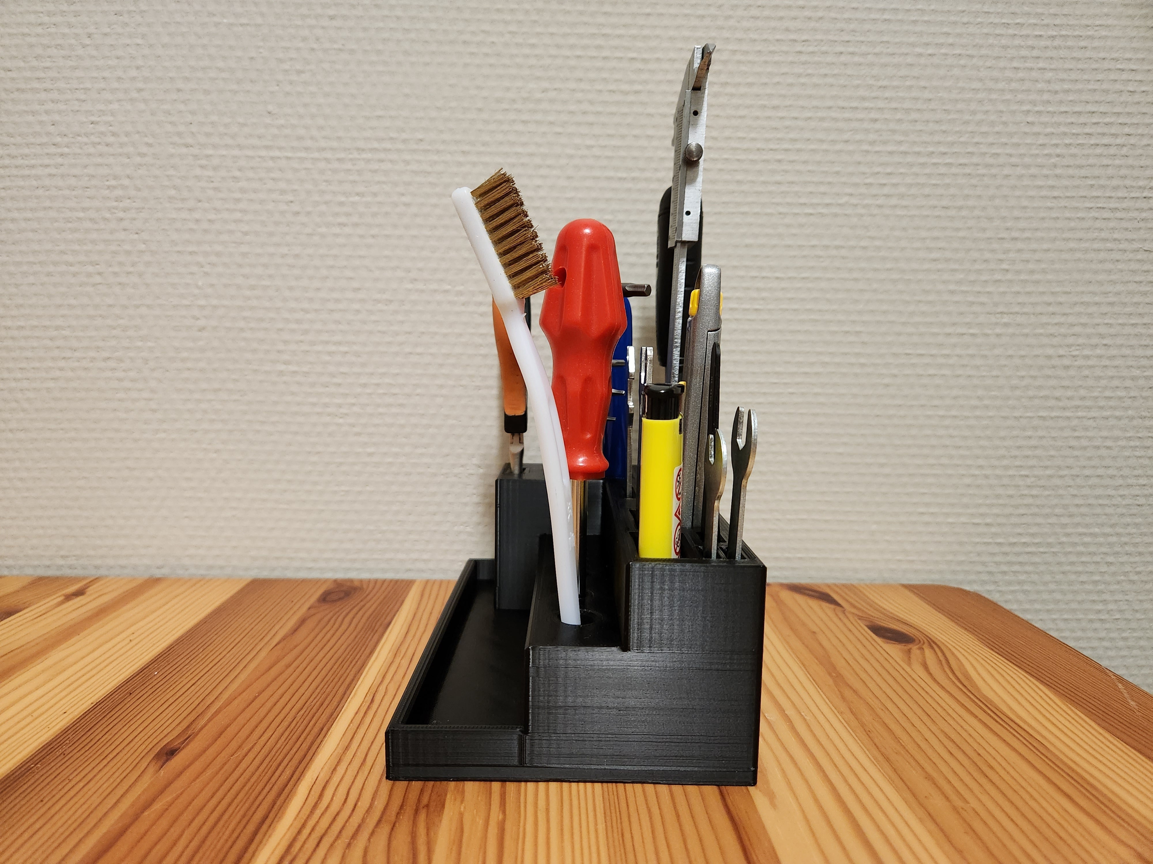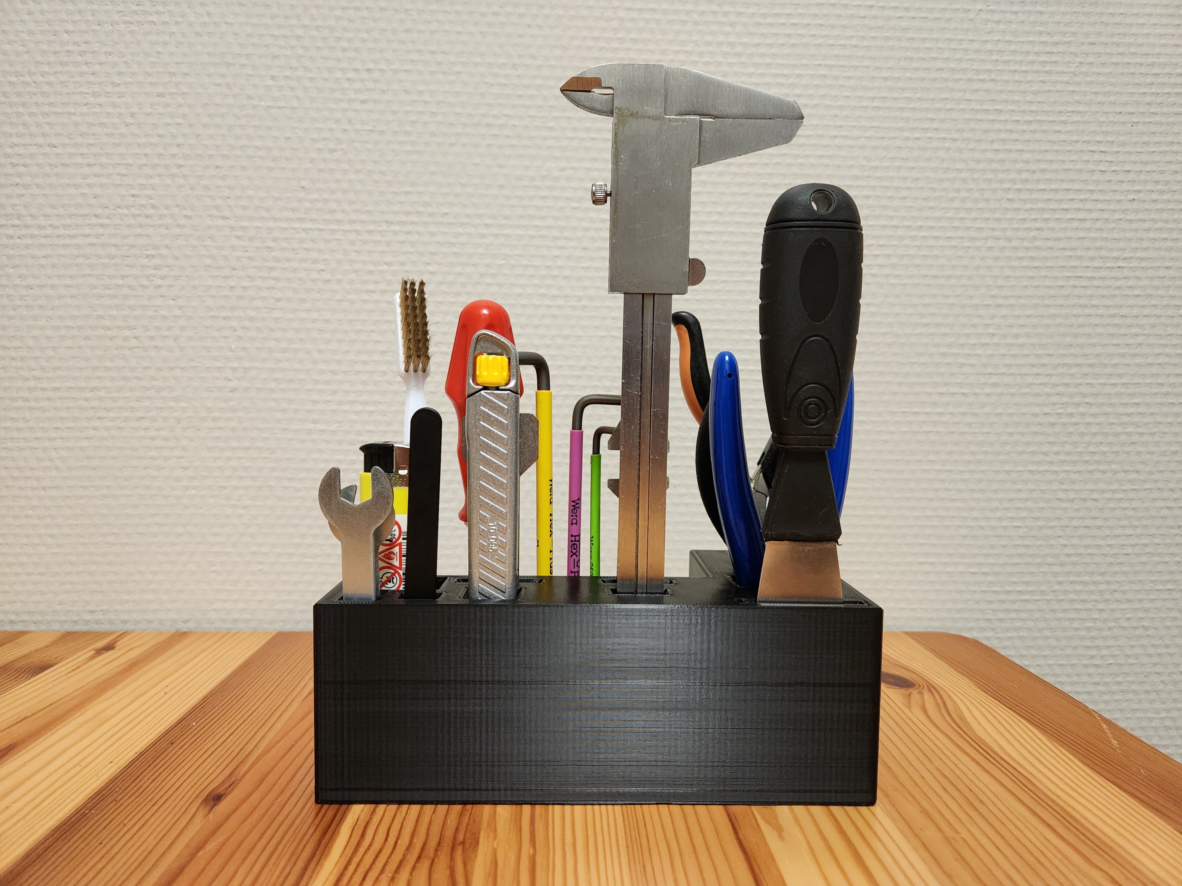 Dieser Werkzeughalter wurde als praktische Aufbewahrungslösung für Ihre wichtigsten 3D-Druckerwerkzeuge entwickelt und hilft Ihnen, Ihren Arbeitsplatz aufgeräumt und organisiert zu halten, sodass Sie die benötigte Ausrüstung beim Drucken oder bei Wartungsarbeiten leicht finden können.
