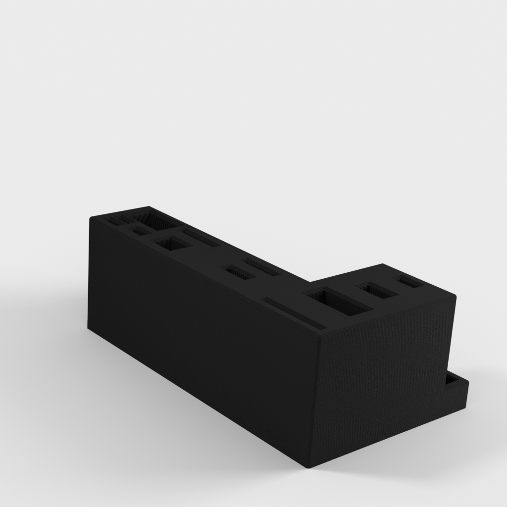 Der Werkzeughalter ist mit einer praktischen Ablage an der Vorderseite ausgestattet. Diese eignet sich ideal zur Aufbewahrung kleinerer Teile wie Schrauben oder Düsen und sorgt dafür, dass diese häufig verwendeten Gegenstände immer griffbereit sind. Das Produkt ist für die Herstellung aus robusten Materialien wie PLA oder PETG konzipiert und bietet eine langlebige Lösung für den täglichen Einsatz in Ihrer 3D-Druckumgebung.