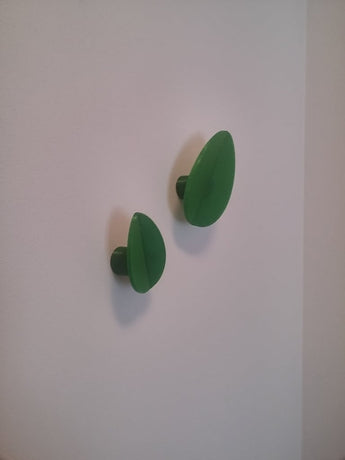 Dieser blattförmige Wandaufhänger bietet eine elegante und praktische Aufbewahrungslösung für Ihr Zuhause. Das Set enthält zwei Haken in verschiedenen Größen, an denen Sie verschiedene Gegenstände aufhängen können – von Oberbekleidung und Schals bis hin zu Taschen und Schlüsseln. Das durchdachte Montagesystem sorgt dafür, dass alle Schrauben nach der Montage verborgen sind, was zu einem sauberen und ungestörten ästhetischen Ausdruck an der Wand beiträgt. Die natürliche Form des Designs trägt zu einem dezenten Charme bei, der beispielsweise gut in den Eingangsbereich, das Schlafzimmer oder das Wohnzimmer passt.