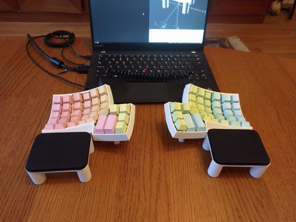 Um einen stabilen Stand auf dem Schreibtisch zu gewährleisten, ist die Handballenauflage mit kleinen Aussparungen unter den Beinen ausgestattet, die für rutschfeste Gummifüße vorgesehen sind. Dies sorgt für einen festen Halt und verhindert ein Verrutschen während des Gebrauchs. Die Abmessungen sind auf die Kinesis-Handgelenkpolster abgestimmt und bieten eine bewährte Passform. Das Design ist jedoch flexibel und kann an individuelle Vorlieben und Bedürfnisse angepasst werden.