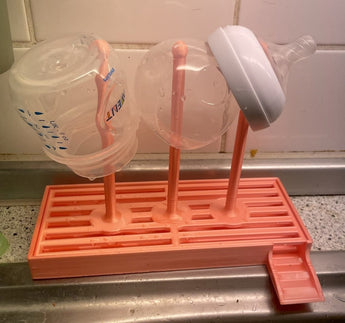 Das Design des Gestells ist besonders vorteilhaft für Küchen mit begrenztem Platz zum Trocknen. Der integrierte Flaschenhalter bietet zusätzliche Funktionalität, sodass Sie Ihre Flaschen problemlos aufrecht lagern und effizient trocknen können.