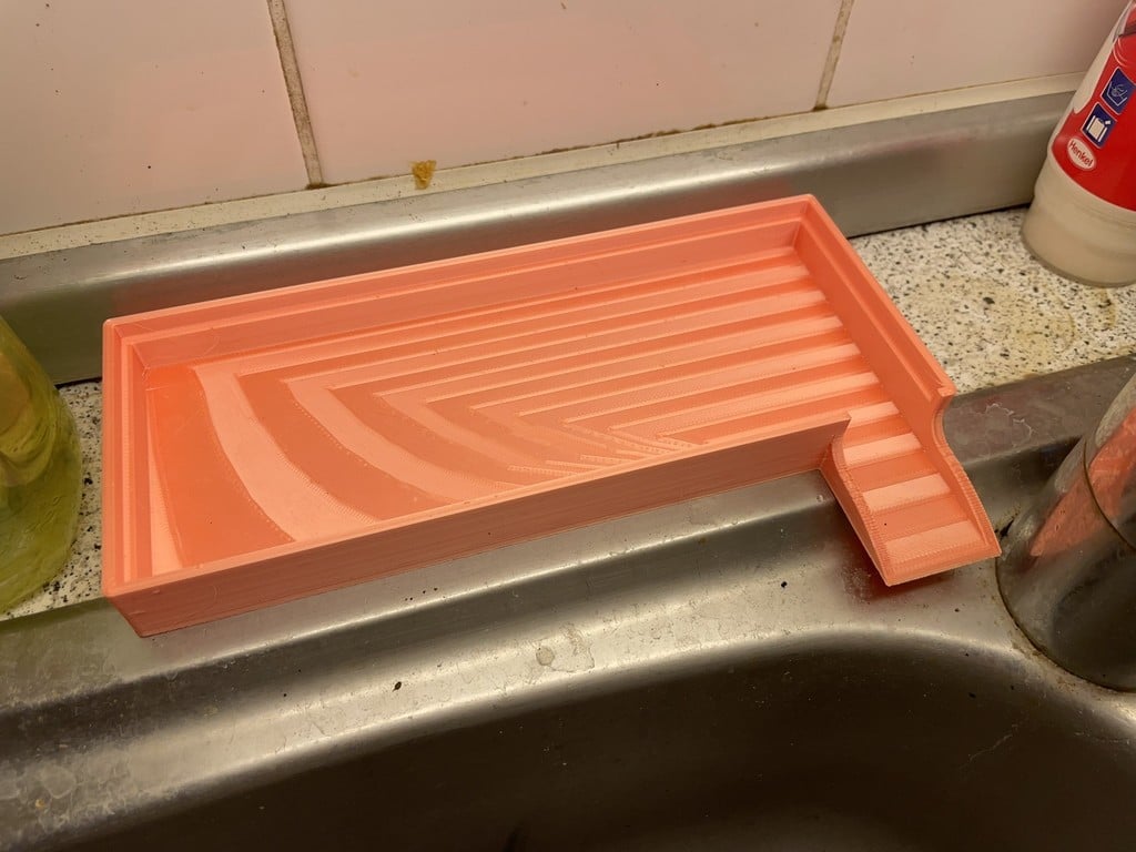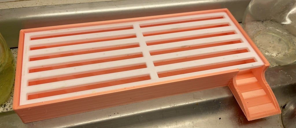 Die Abmessungen des Organizers sind durchdacht und passen in die meisten Standard-Küchenspülen. Die Grundfläche misst 8 cm x 20 cm x 2 cm und verfügt über einen Abfluss von 3,5 cm Länge und 3 cm Breite. Das Gestell selbst misst 7,4 cm x 19,4 cm, und der Flaschenhalter hat eine Höhe von 13,8 cm und bietet somit ausreichend Platz für auch größere Flaschen.