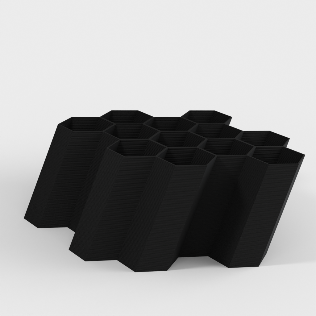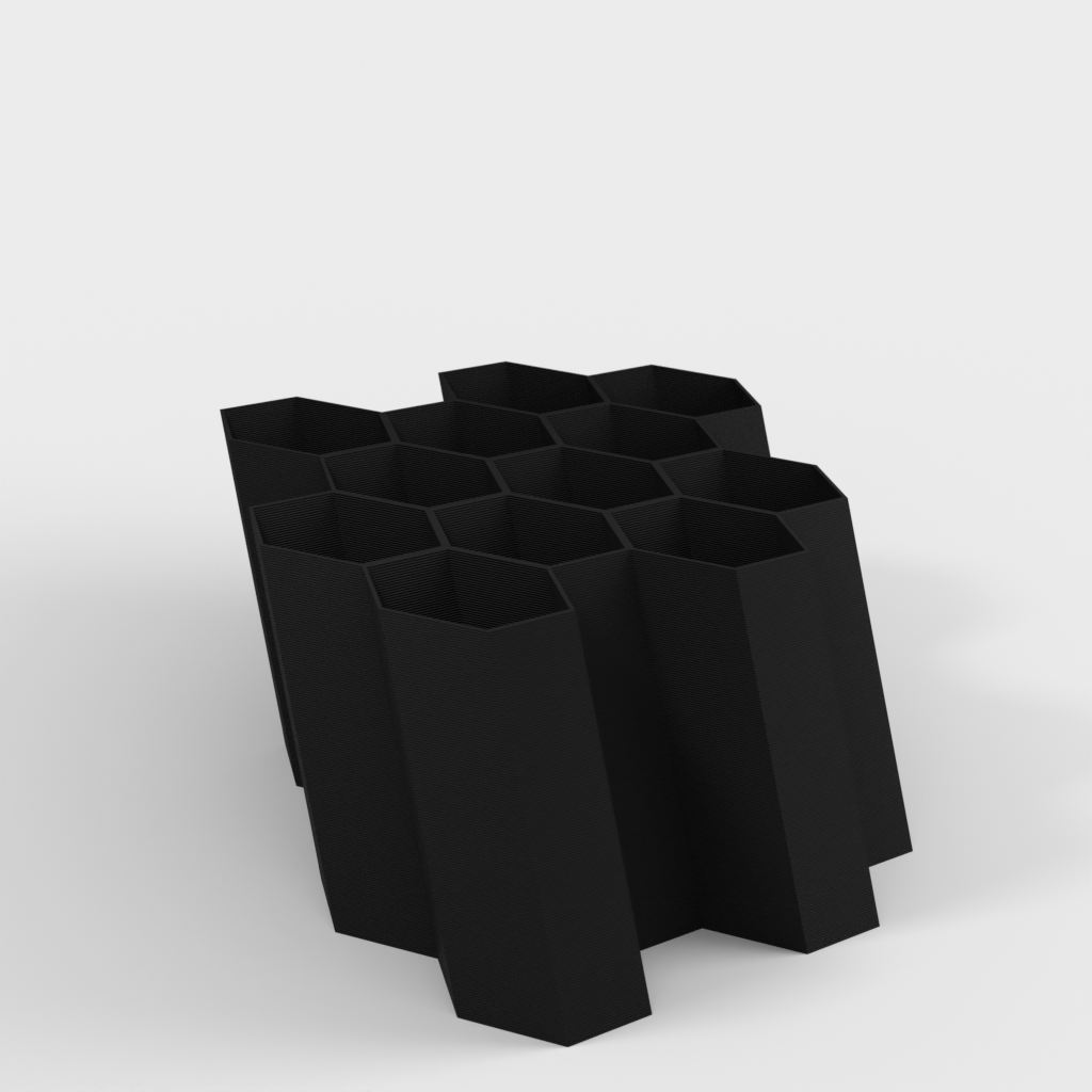 Organisieren Sie Ihre Acrylfarben mit diesem stilvollen sechseckigen Halter für Standard-Farbflaschen (35 x 35 x 98 mm). Der Halter kann entweder mit Schrauben an der Wand befestigt oder stabil auf dem Schreibtisch stehen. Er ist eine flexible Lösung für Künstler, die schnellen Zugriff auf ihre Farben benötigen.