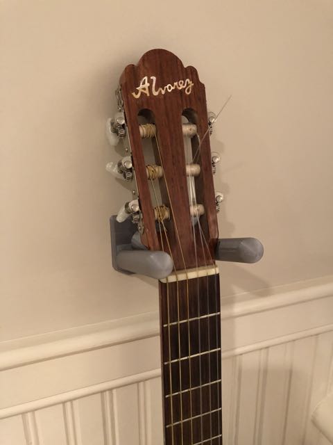 Die Montage ist unkompliziert, da die Löcher für Standard-Trockenbaudübel (z. B. mittelgroße EZ Ancor) ausgelegt sind. Für optimale Stabilität und Sicherheit ist die Halterung mit einem dickeren Außenrand ausgestattet, der eine solide Basis für die Befestigungsschrauben bietet. Sollte Ihr Gitarrenmodell einen vom Standardmaß (57 mm) abweichenden Hals haben, lässt sich das Design problemlos anpassen, um eine perfekte Passform zu gewährleisten. Diese Gitarrenwandhalterung bietet eine praktische und stilvolle Lösung für alle klassischen Gitarristen.