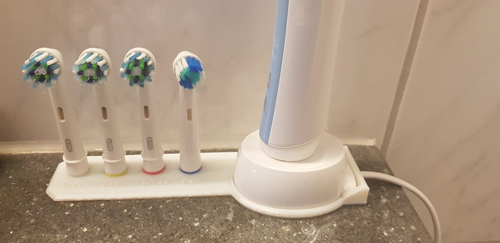Dieser funktionale Ständer bietet eine einfache und stilvolle Lösung für die übersichtliche Aufbewahrung Ihrer Oral-B Zahnbürstenköpfe und Ihres Braun Zahnbürstenladegeräts. Das minimalistische und dezente Design macht ihn zu einer ästhetischen Ergänzung für jedes Badezimmer. Der Ständer hilft Ihnen, Ihre Mundhygiene-Aufbewahrung übersichtlich zu organisieren, sodass Sie den richtigen Zahnbürstenkopf leicht finden und das Ladegerät an Ort und Stelle halten können. Die verbesserte Konstruktion sorgt für eine robuste und langlebige Lösung, die optimalen Sitz für Ihre Zahnbürstenköpfe und das Ladegerät bietet. Dank der klaren Kennzeichnung der einzelnen Steckplätze können die Zahnbürstenköpfe der Familie leicht identifiziert und getrennt werden.
