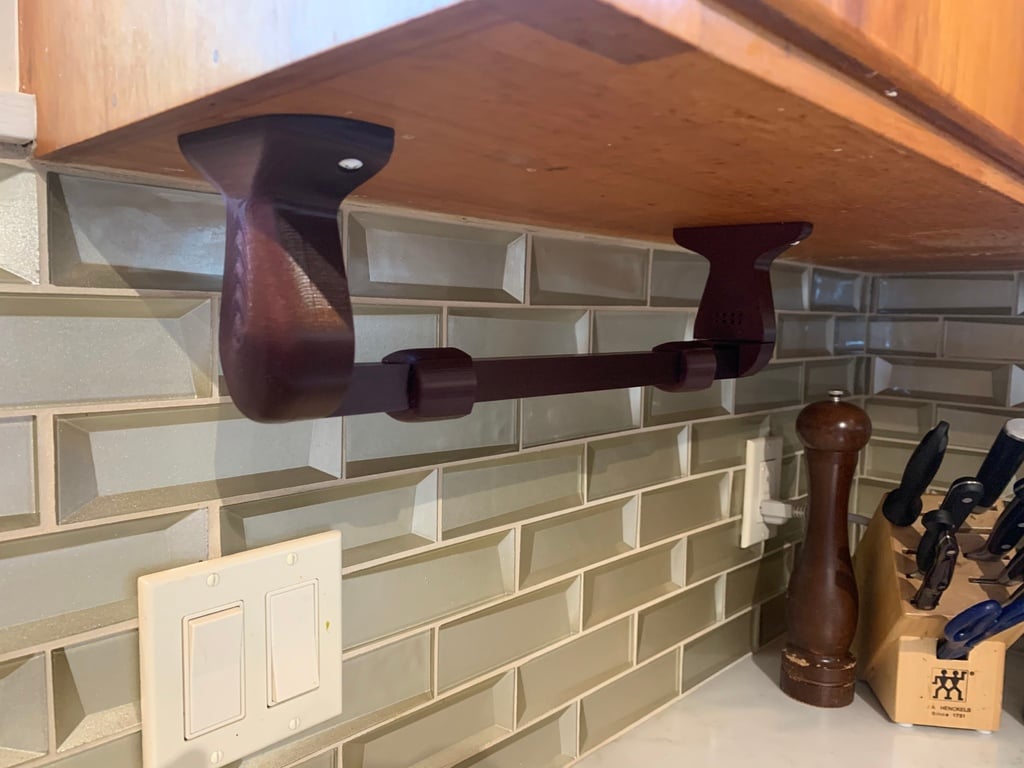 Der Halter ist für Papierhandtücher mit einer Länge von 11 Zoll und einem Durchmesser von 6 Zoll optimiert, sodass Sie sich auf einen guten Sitz verlassen können. Das Material, Prusa PLA in einem geheimnisvollen Braunton, trägt zu einer wunderschönen Ästhetik bei, die mit ihrer holzähnlichen Wirkung und den im Licht wechselnden Farben dem Raum eine stilvolle Note verleiht.