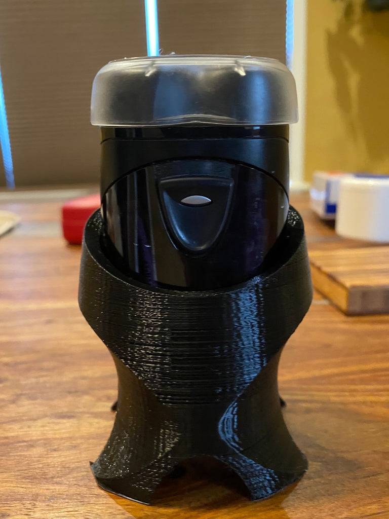 Dieser Rasierständer wurde speziell entwickelt, um Ihrem Philips Norelco PQ208/40 Reiserasierer einen stabilen und sicheren Platz zu bieten. Viele neuere Modelle dieses Reiserasierers sind nicht für den eigenständigen Stand konzipiert. Mit diesem maßgeschneiderten Halter können Sie Ihren Rasierer jedoch sicher und griffbereit im Badezimmer oder auf Reisen aufbewahren. Die durchdachte Konstruktion verleiht ihm ein leichtes und modernes Aussehen und sorgt dafür, dass der Rasierer stets fest steht und gleichzeitig seine ursprüngliche Ästhetik unterstreicht. Es ist eine funktionale Aufbewahrungslösung, die für Ordnung sorgt und Ihren Rasierer einsatzbereit macht.