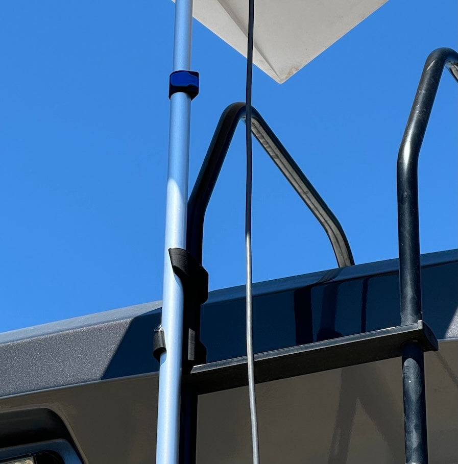 Mit diesem Montagesystem können Sie Ihr StarLink Gen3 Dishy-Panel sicher an einer heckmontierten Leiter Ihres Wohnmobils befestigen. Das Kit besteht aus zwei stabilen Halterungen und einem Adapter für den StarLink Pipe Adapter und eine Standard-Teleskopverlängerungsstange (beide separat erhältlich).