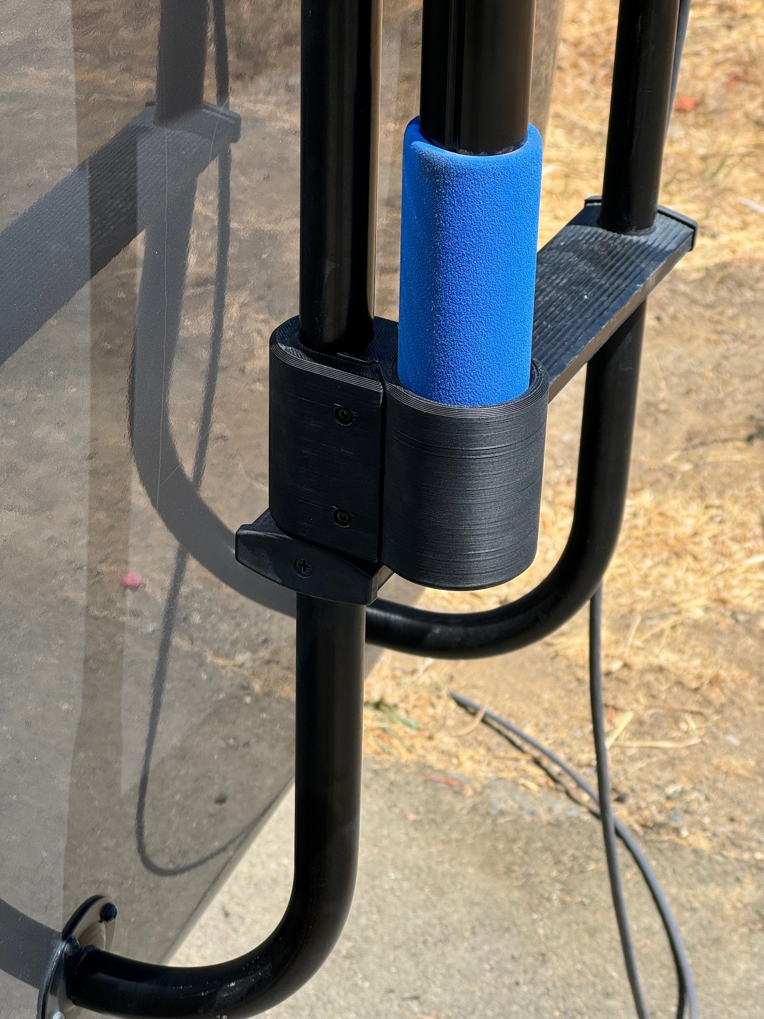 Die Halterungen sind präzise für die Aufnahme von Steigleitungen mit einem Durchmesser von 1 Zoll ausgelegt. Der feste Sitz gewährleistet eine stabile und zuverlässige Befestigung, die Bewegungen minimiert und Ihr StarLink-Panel sicher an seinem Platz hält. Die obere Halterung hält die Stange, während die untere Schale die Unterseite der Stange gegen die Leiter stützt.