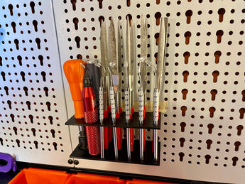 Egal, ob Sie mit Feilen oder kleinen Handwerkzeugen arbeiten oder einen praktischen Halter für Ihren Akkuschrauber und Zubehör suchen – dieses System bietet Ihnen eine effiziente Möglichkeit, Ihre Gegenstände zu organisieren. Es hilft Ihnen, Unordnung und Zeitverschwendung bei der Suche nach Werkzeugen zu vermeiden, sodass Sie sich auf Ihr Projekt konzentrieren können.