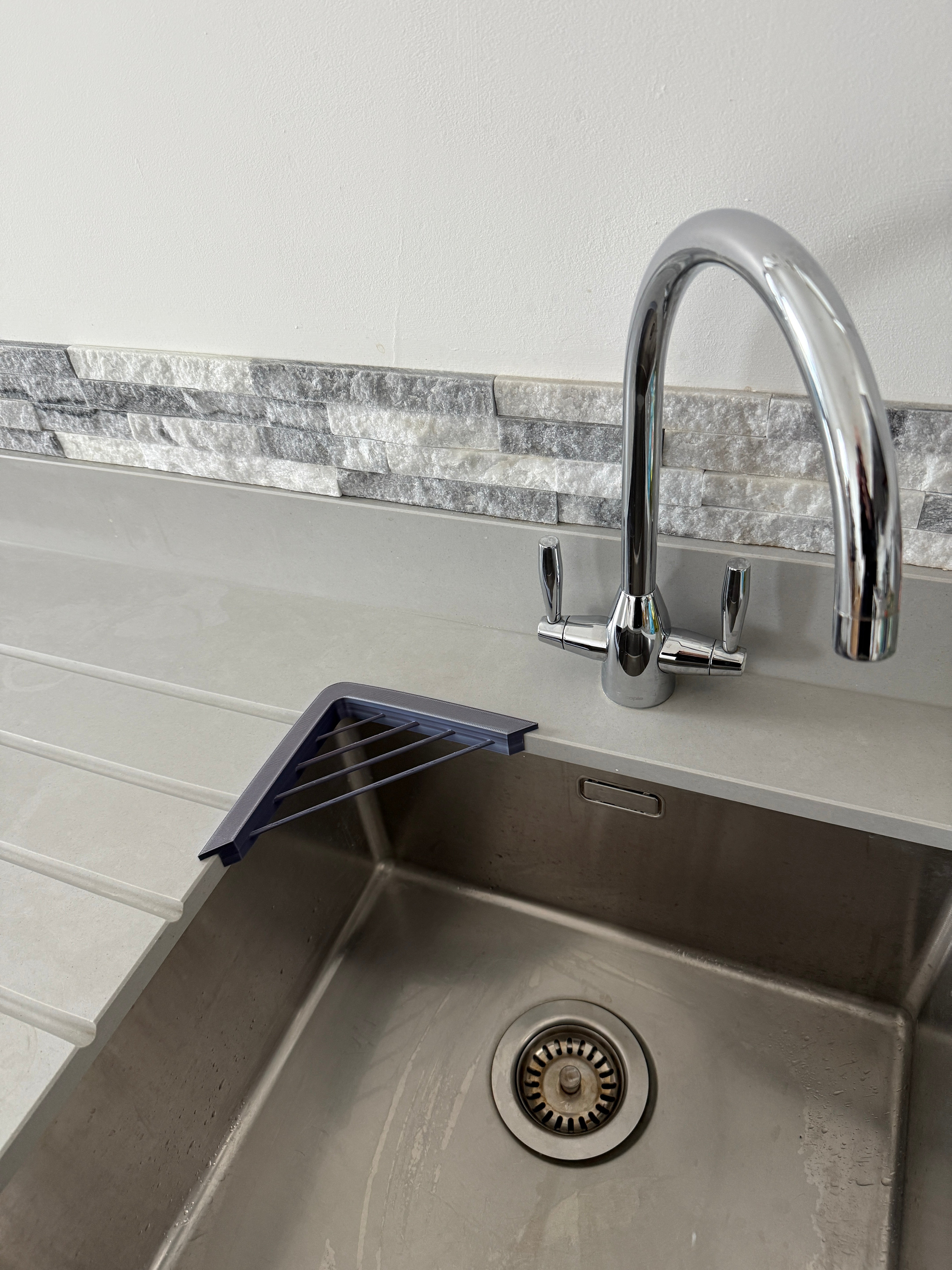 Dieses Abtropfgestell passt perfekt in die Ecke Ihrer Küchenspüle und bietet eine praktische Lösung zum Aufbewahren und Trocknen von Geschirrtüchern und Schwämmen. Das Gestell sorgt dafür, dass überschüssiges Wasser direkt in die Spüle tropft und Ihre Küchenoberflächen trocken und frei von Pfützen bleiben. Es ist ein nützliches Küchenwerkzeug, das zu einer übersichtlicheren und hygienischeren Küchenumgebung beiträgt. Ob nach dem täglichen Abwasch oder Putzen, dieses Gestell bietet einen speziellen Platz zum Auslüften Ihrer Spülutensilien.