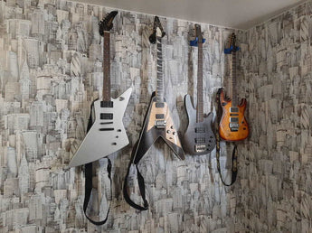 Egal, ob Sie eine akustische oder elektrische Gitarre haben, dieser Aufhänger sorgt für die sichere und ordentliche Aufbewahrung Ihres Instruments und trägt zu einem aufgeräumten Musikzimmer bei.