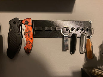 Dieser 230 mm x 50 mm große Messerhalter zur Wandmontage optimiert den Platz in Ihrer Küche oder Werkstatt. Er bietet eine praktische Lösung zur Aufbewahrung von bis zu 10 Messern, darunter Ansteckmesser, Schweizer Taschenmesser oder andere Werkzeuge mit Metallring. Durch die Wandmontage schaffen Sie einen übersichtlichen und organisierten Raum, in dem Ihre Messer sicher aufbewahrt und leicht erreichbar sind. Die robuste Konstruktion sorgt für einen sicheren Halt Ihrer Werkzeuge und eine aufgeräumtere und funktionalere Arbeitsfläche.