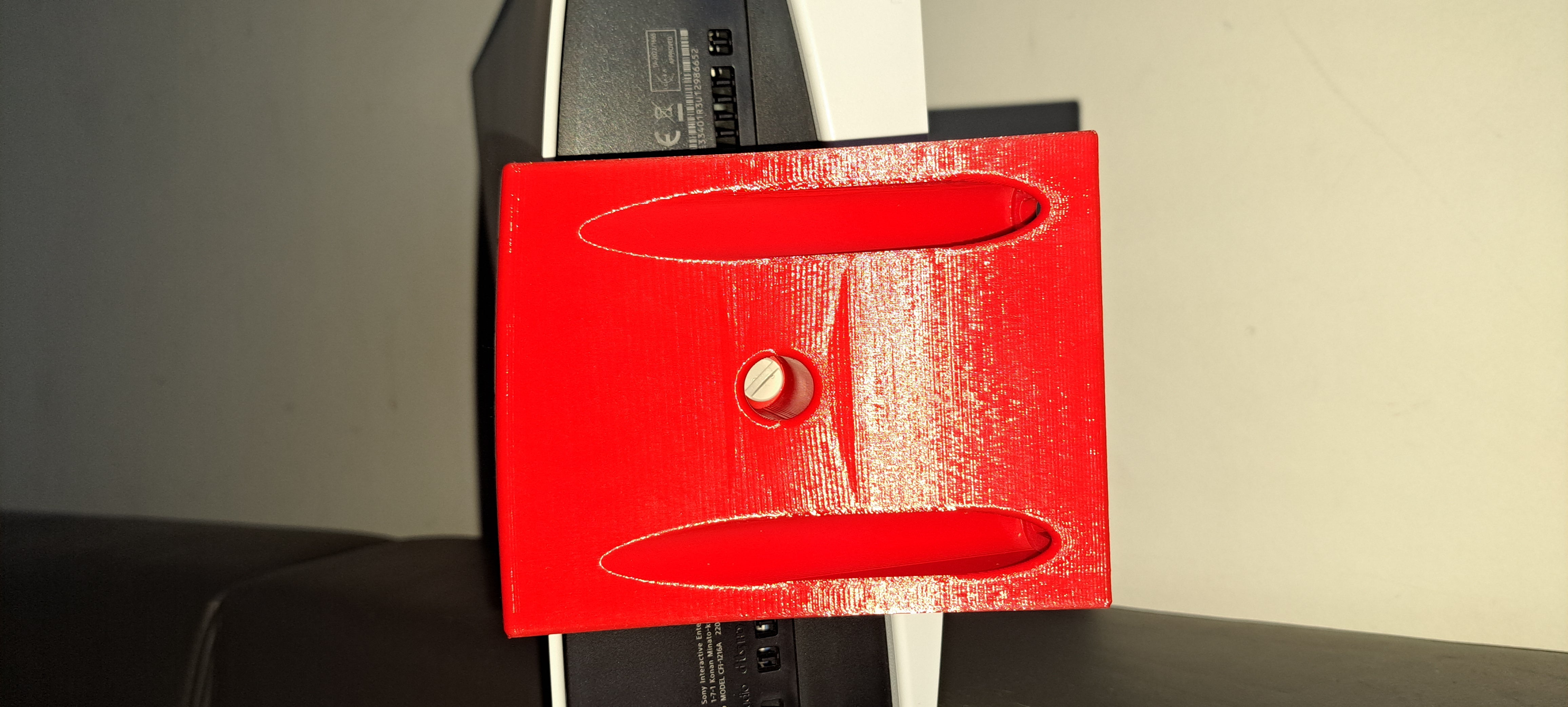 Die Oberseite der Halterung ist bewusst klein und unauffällig gestaltet. So können Sie zusätzliches Zubehör, wie z. B. einen Controller-Ständer, an der Vorderseite der Konsole befestigen, ohne Funktionalität oder Ästhetik zu beeinträchtigen. Die kompakte Oberseite verhindert außerdem ein Umkippen der Konsole und sorgt so für zusätzliche Stabilität Ihrer PlayStation 5.