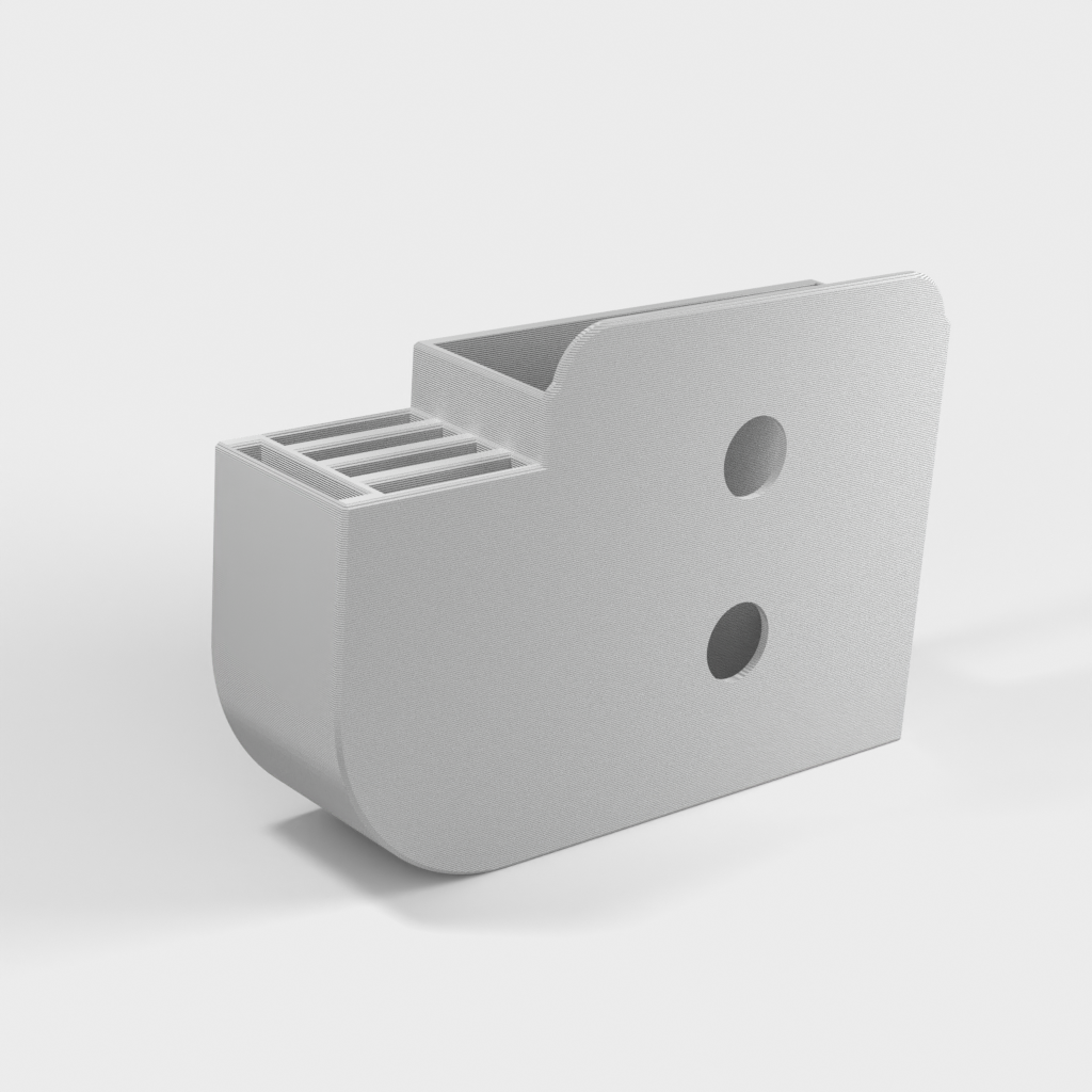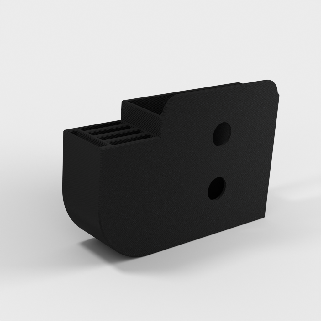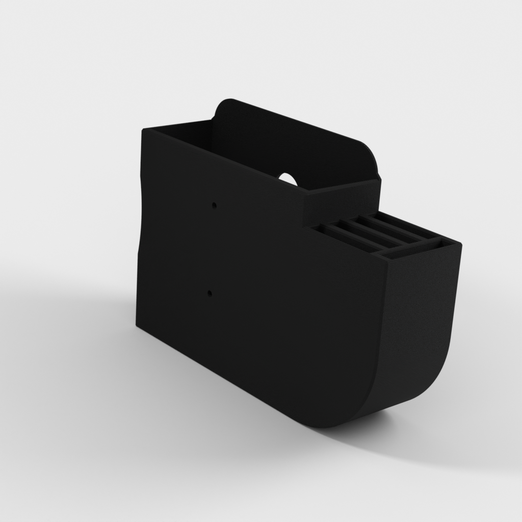 Diese Halterung wurde speziell für den SteelSeries Arctis Pro Wireless DAC entwickelt und bietet eine praktische Lösung für mehr Ordnung auf Ihrem Schreibtisch. Sie ermöglicht die sichere Befestigung Ihres DAC unter Ihrem Schreibtisch, wodurch wertvoller Platz frei wird und Kabel außer Sichtweite bleiben. Die Halterung hält nicht nur den DAC an Ort und Stelle, sondern verfügt auch über spezielle Fächer zur Aufbewahrung zusätzlicher Akkus, sodass Ihr SteelSeries Arctis Pro Wireless-Headset immer mit Strom versorgt ist. Das Gerät ist auch unter dem Schreibtisch leicht zugänglich, sodass Einstellungen und Aufladen mühelos erfolgen können.