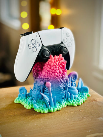 - Dekorativer Controller-Ständer mit einem einzigartigen und detaillierten Waldlandschaftsdesign.
