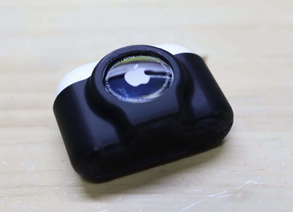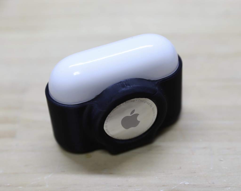 Hülle zum Anbringen von AirTags an AirPods Pro. Auch kabelloses Laden ist möglich.