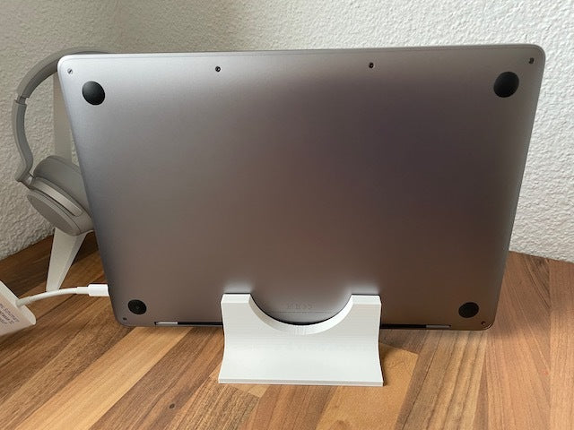 Dies ist ein Tischständer für MacBook Pro 13" M1. Passend für alle MacBooks mit einer maximalen Dicke von 16 mm. Er eignet sich perfekt für die Organisation Ihres Schreibtisches und gibt Ihrem MacBook einen sicheren und stabilen Ort, wenn es nicht verwendet wird.