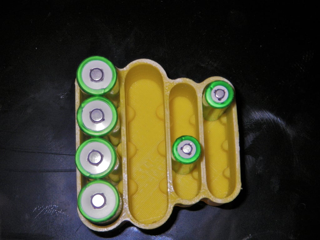 Halten Sie Ihre Batterien mit diesem Batteriehalter an Ort und Stelle. Es kann bis zu 8 AA-Batterien und 8 AAA-Batterien aufnehmen. Und Version 2 dieses Batteriehalters hat kleine Löcher in der Bodenplatte, ansonsten ist er identisch mit der Originalversion.