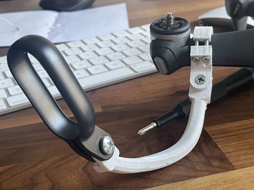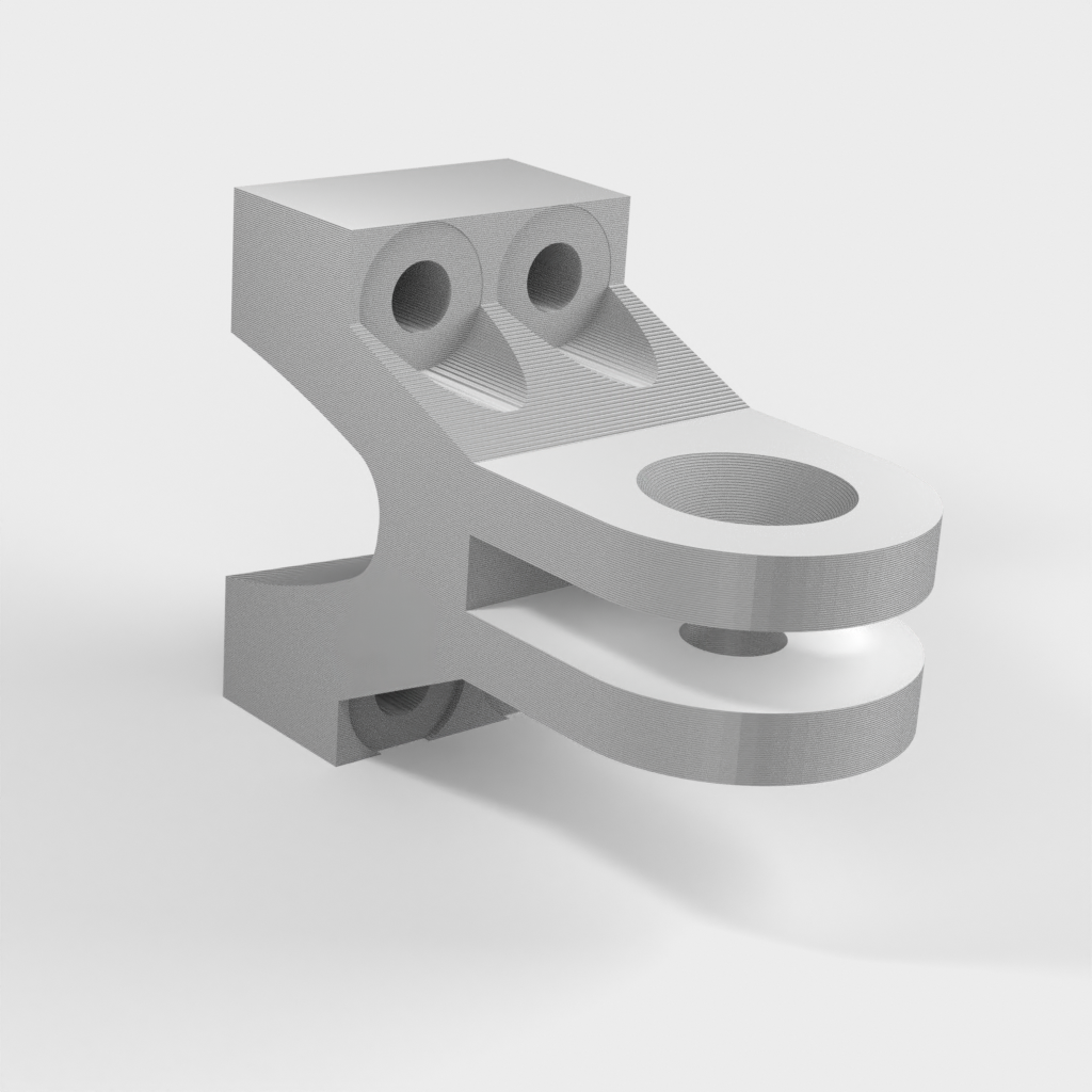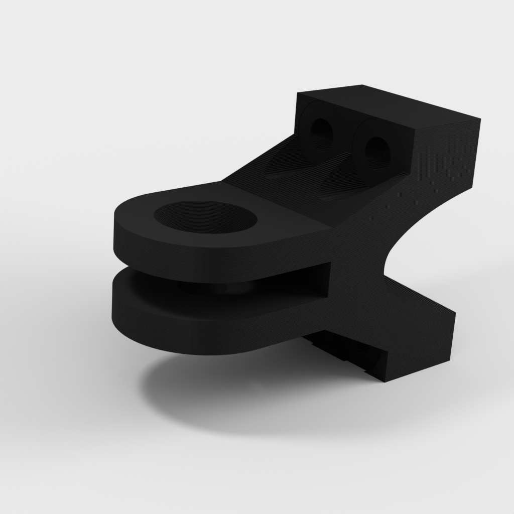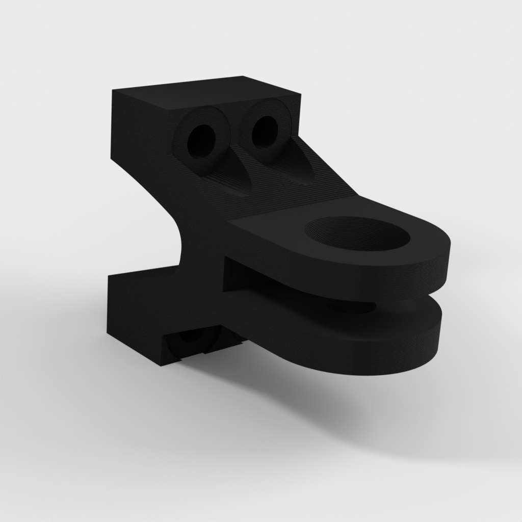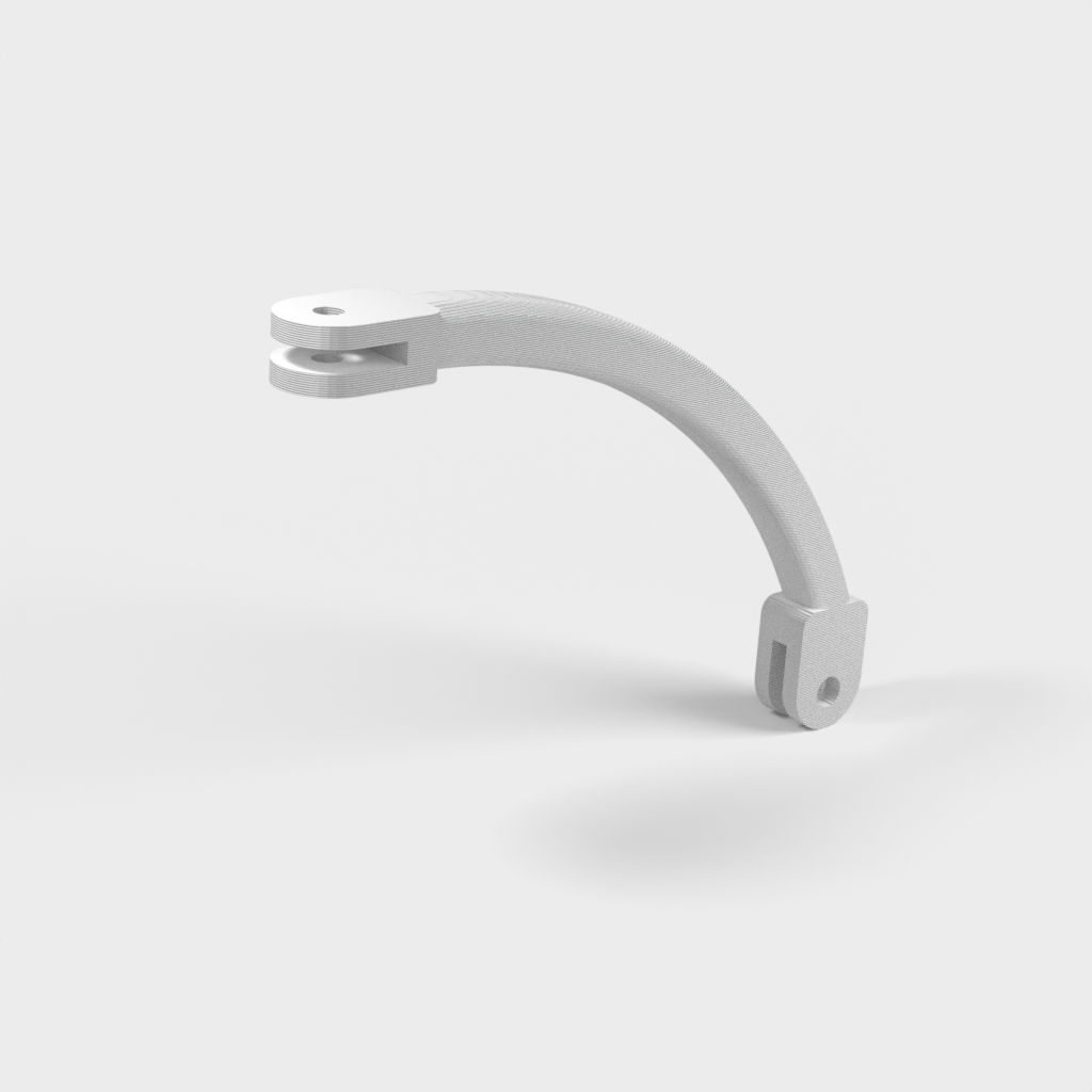 Das Armteil (mount-3.stl) muss mit einer Heißluftpistole oder einem Fön erhitzt werden, damit es formbar wird und die Kamera bestmöglich positioniert werden kann. Dadurch erhält der Arm eine bessere Stabilität, da sonst ein flacher Druck nicht möglich wäre und die Schichten nicht durchgängig wären.