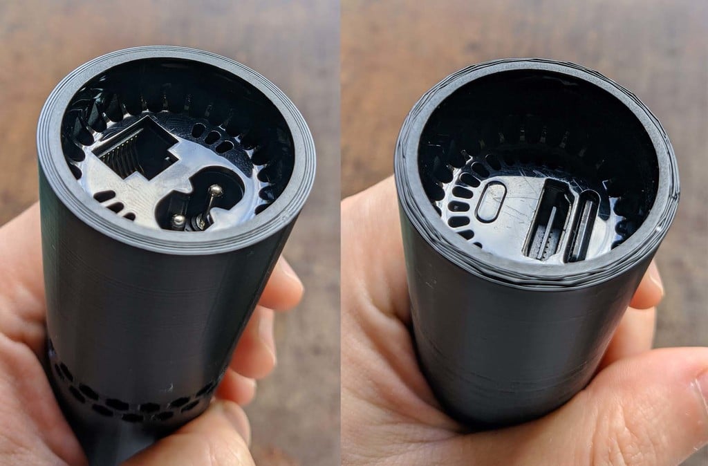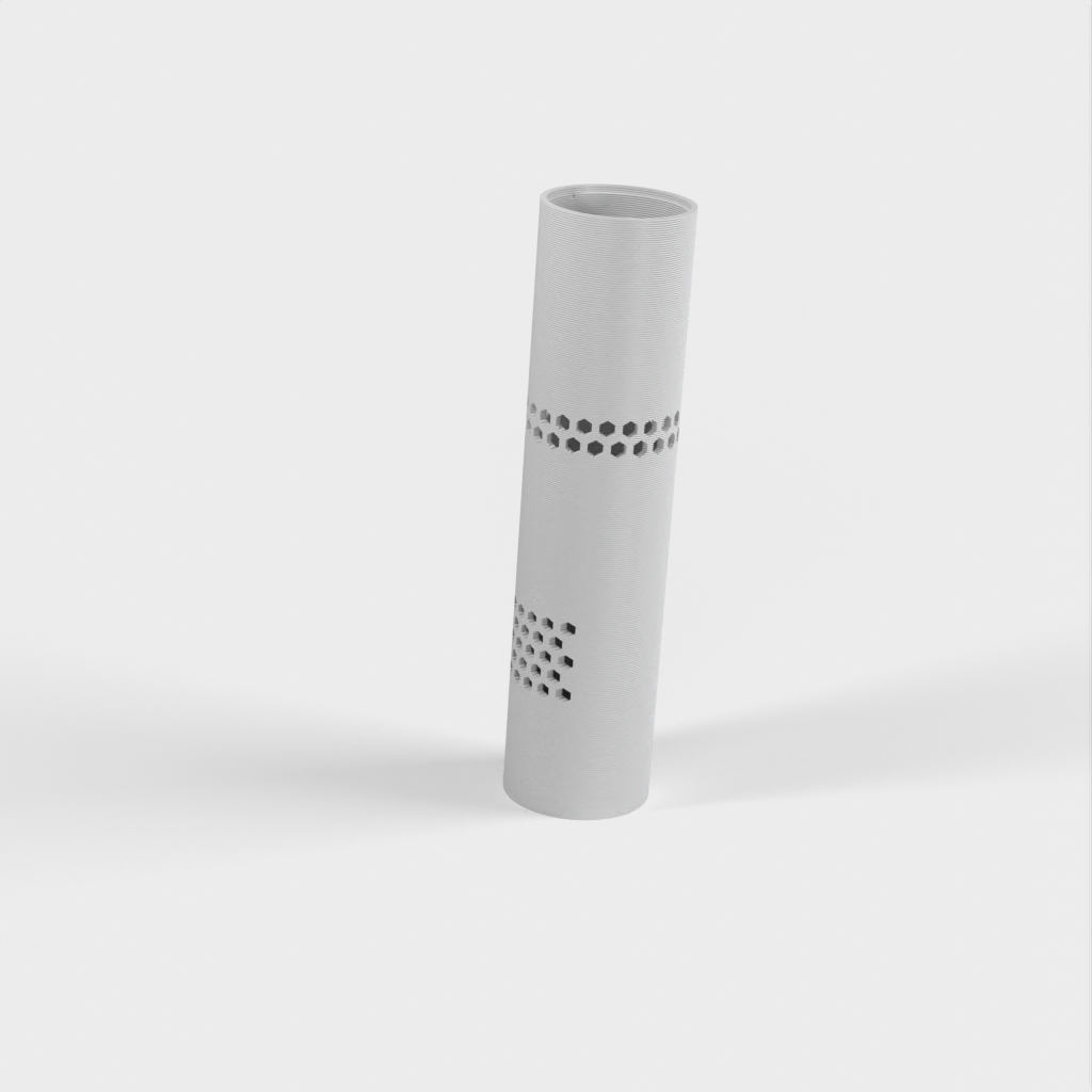 Das Nvidia Shield 2019 Tube „Airflow“-Gehäuse ist so konzipiert, dass es den Luftstrom in das Gerät erhöht und die heiße Luft ausstößt, wodurch das Gerät kühler bleibt und die Notwendigkeit reduziert wird, dass der eingebaute Lüfter mit hoher Leistung laufen muss. Dadurch werden störende Geräusche des Kühlers minimiert, auch bei längerem Einsatz und maximaler Leistungseinstellung. Das Gehäuse kann zwar immer noch heiß werden, der Geräuschpegel wird jedoch deutlich reduziert. Das Produkt enthält eine *.stl-Datei, die sich von der auf den Bildern unterscheidet, mit kleineren „Ausrichtungsstiften“ für eine problemlose Installation.
