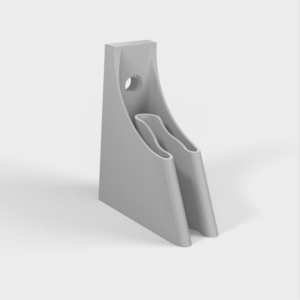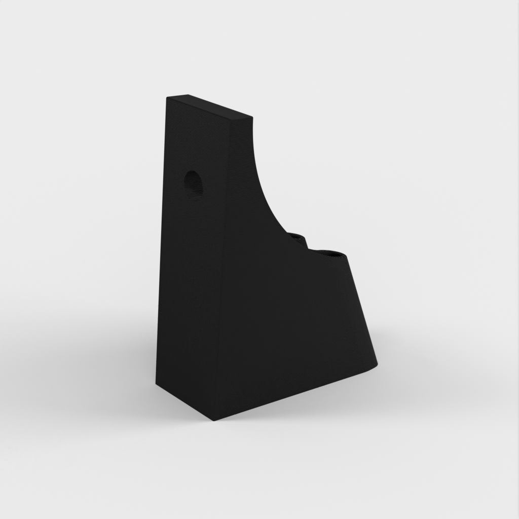 Dies ist ein an der Wand montierter Sensorhalter für die Oculus Rift, der Ihnen hilft, Ihren Schreibtisch zu organisieren und die Verfolgung zu verbessern. Zur Installation schrauben Sie einfach die Oculus Rift-Sensoren von ihrer Basis ab und setzen sie in diese 3D-gedruckten Konsolen ein. Befestigen Sie die Halterungen mit einer Schnellbauschraube oder einer 3 m langen Befehlsleiste an Ihrer Wand.