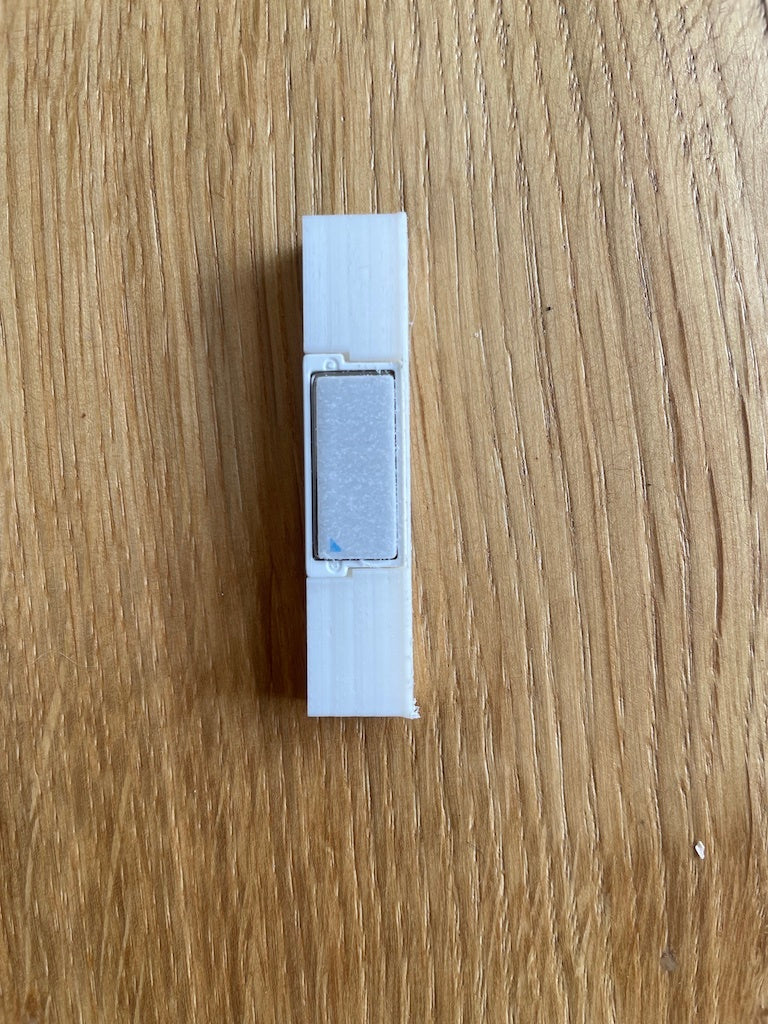 Die schlanke Magnethalterung des Ring Alarm Kontaktsensors der 2. Generation eignet sich perfekt zur Lösung des Problems des Höhenunterschieds, wenn Ihre Tür eine dicke Kante hat, die den Magnet und den Sensor aus der vertikalen Ausrichtung bringt. Die magnetische Befestigung umfasst eine Aussparung, die zu diesem Kunststoffbehälter passt und über beiden einrastet. Der Magnet ist stark genug, um sehr großzügig positioniert zu werden, und wenn Sie die Ausrichtung anpassen können, ist er ein ideales Sicherheitszubehör.