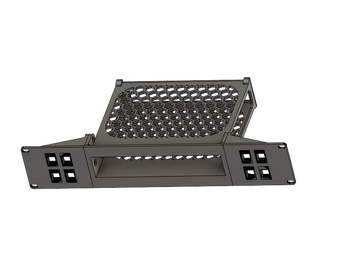 Diese 2U Rackhalterung ermöglicht die Montage eines Ubiquiti UniFi US-8-150W Switches in einem Standard 19-Zoll-Rackschrank. Das Design beinhaltet optionale Seitenplatten mit Platz für Keystones, was eine saubere und organisierte Netzwerkintegration gewährleistet. Die Montage erfordert M5-Schrauben und Muttern zur sicheren Befestigung.