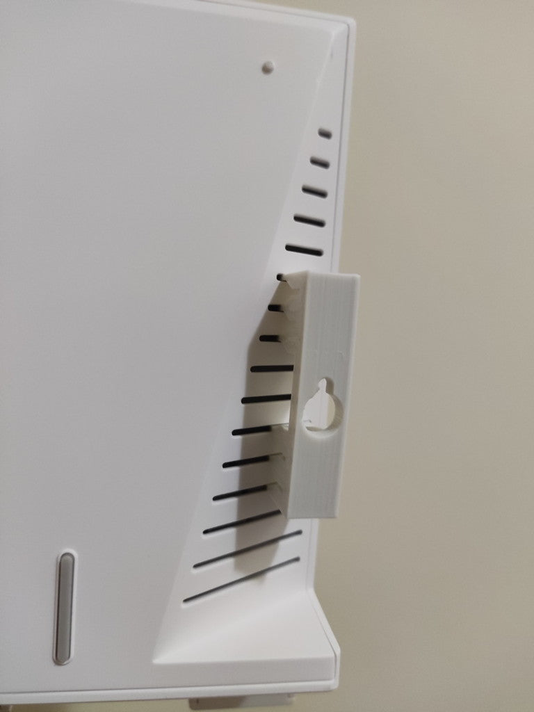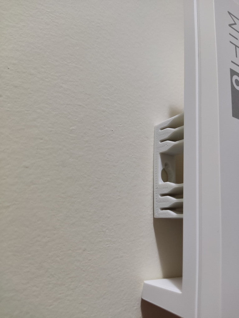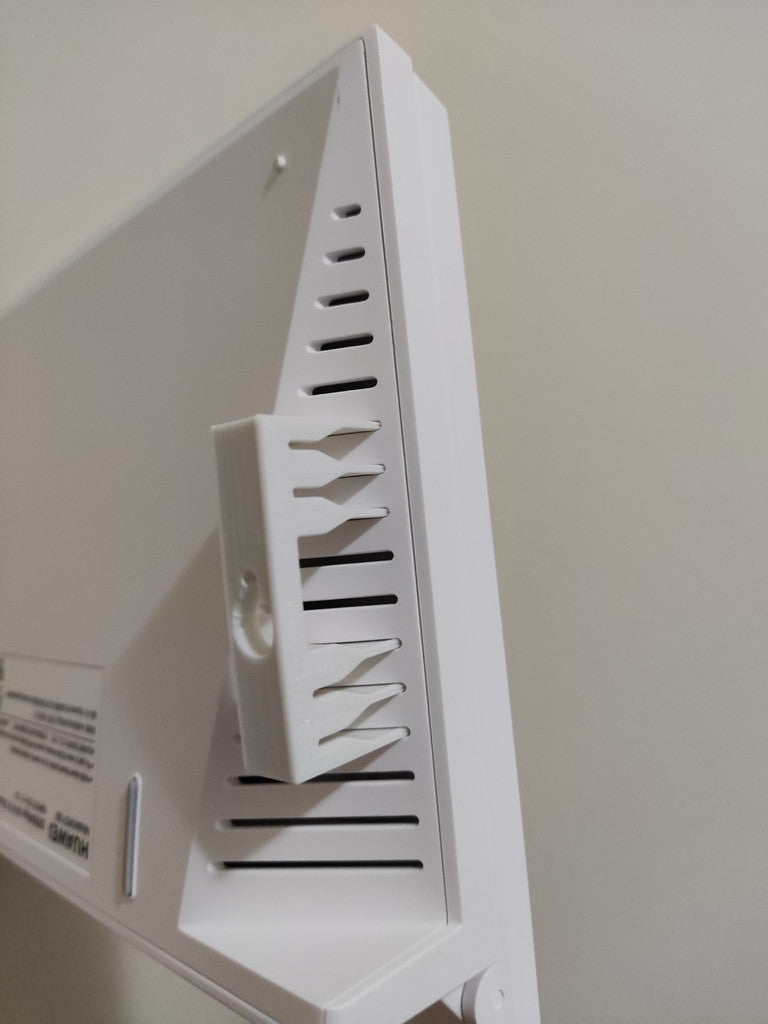 Wandhalterung für einen Huawei AX3-Router, die in der Lüftungsöffnung des Routers hängt.
