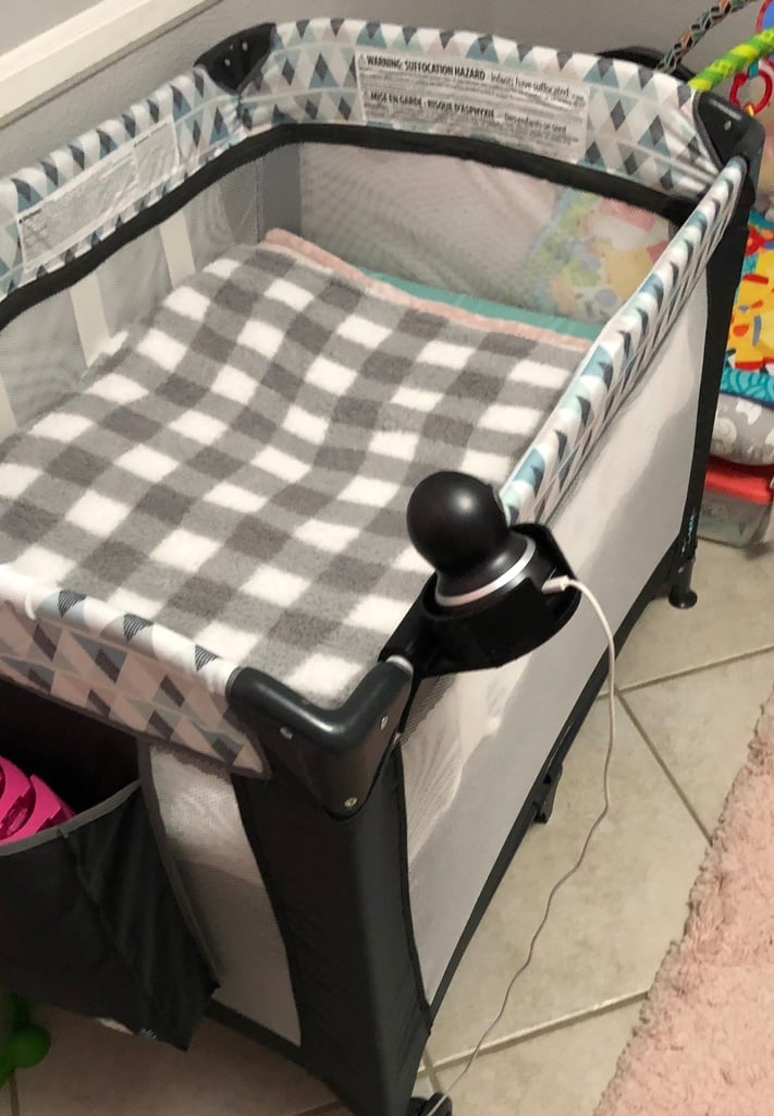 Wenn Ihr Kind älter wird und die Kamera erreichen kann, lässt sich die Halterung einfach an einer Gardinenstange oder einem Fensterrahmen in der Nähe des Bettes befestigen. So ist eine weiterhin diskrete und sichere Überwachung gewährleistet, sodass Sie beruhigt sein können, dass Ihr Kind sicher ist.