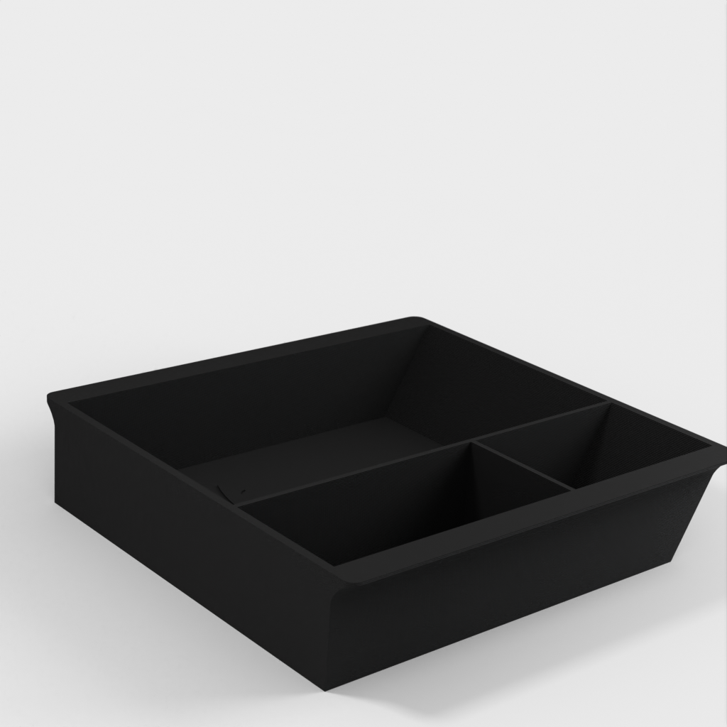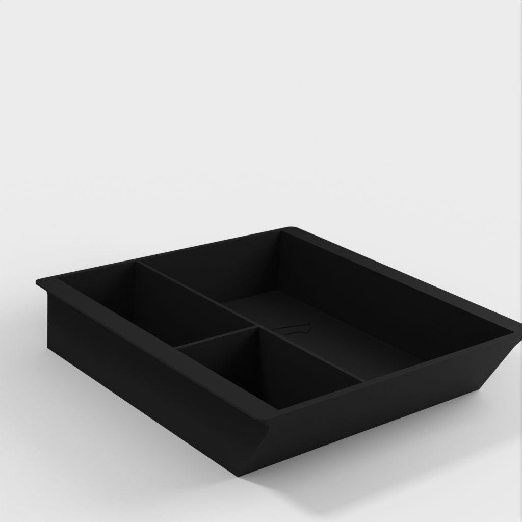 Verstärkte Mittelkonsolenschale für Tesla Model 3 und Model Y 2021 2022. An der Unterseite wurde zusätzlich 1 mm hinzugefügt, um die Schale zu verstärken. Es gibt auch eine Variante ohne Tesla-Logo.