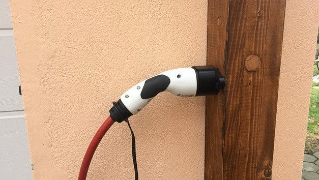 Einfache und robuste Aufhängung für ein Typ 2 Stecker/Ladekabel „Plug Connector“. Die Aufhängung passt auf das Ende des Ladekabels, das Sie ins Auto stecken.
