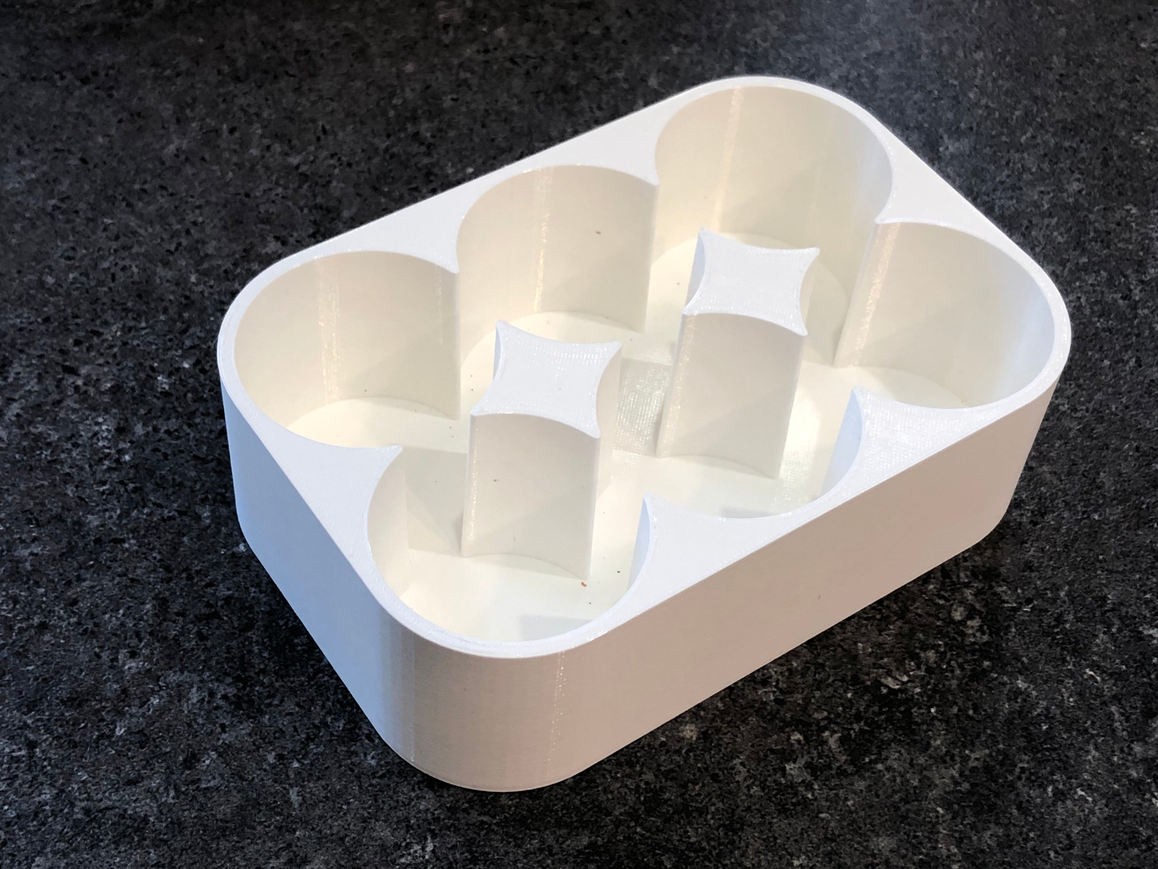 Jeder Ausschnitt ist so bemessen, dass er perfekt zu Grindern wie Kamis und Katanyi sowie anderen Modellen mit einem Durchmesser von etwa 50 mm passt. Mit einem 53 mm großen Ausschnitt an der schmalsten Stelle ist eine stabile Platzierung Ihrer Grinder gewährleistet.