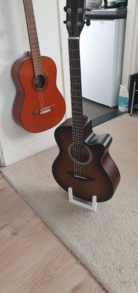 Einfacher Gitarrenständer zur organisierten Aufbewahrung Ihrer Gitarre. Dieser Gitarrenständer ist ideal für Ihr Schlafzimmer und Ihr Musikzimmer. Mit seinem robusten Design sorgt es dafür, dass Ihr Musikinstrument sicher untergebracht ist, wenn es nicht verwendet wird.